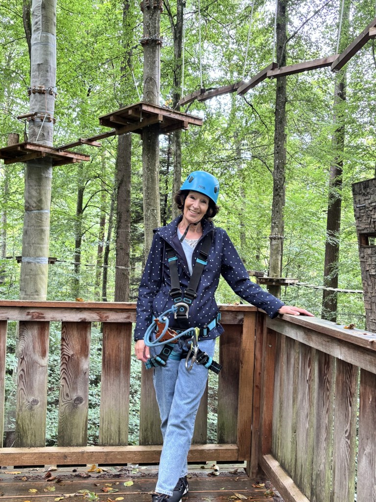 Aber von Hindernis zu Hindernis wurde es leichter und ich hätte nicht gedacht, dass ich so viel Spass haben würde. Einer der Guides hat immer mal wieder hochgerufen ‚gut gemacht‘ oder den Daumen nach oben gehalten. Nach 2 Stunden Kletterzeit und 3 geschafften Parcous haben wir beschlossen, das genügt für heute. Ganz ehrlich? Ich war direkt ein bisschen stolz auf mich, dass ich meine Ängste überwunden habe und den Spass mitgemacht habe. Vor allem, nachdem mein kleiner Enkel zum Schluss anerkennend zu mir sagte ‚Omi, ich bin sooo stolz auf dich, dass du so mutig warst. Das ist doch was, oder😊?