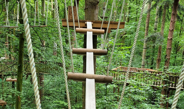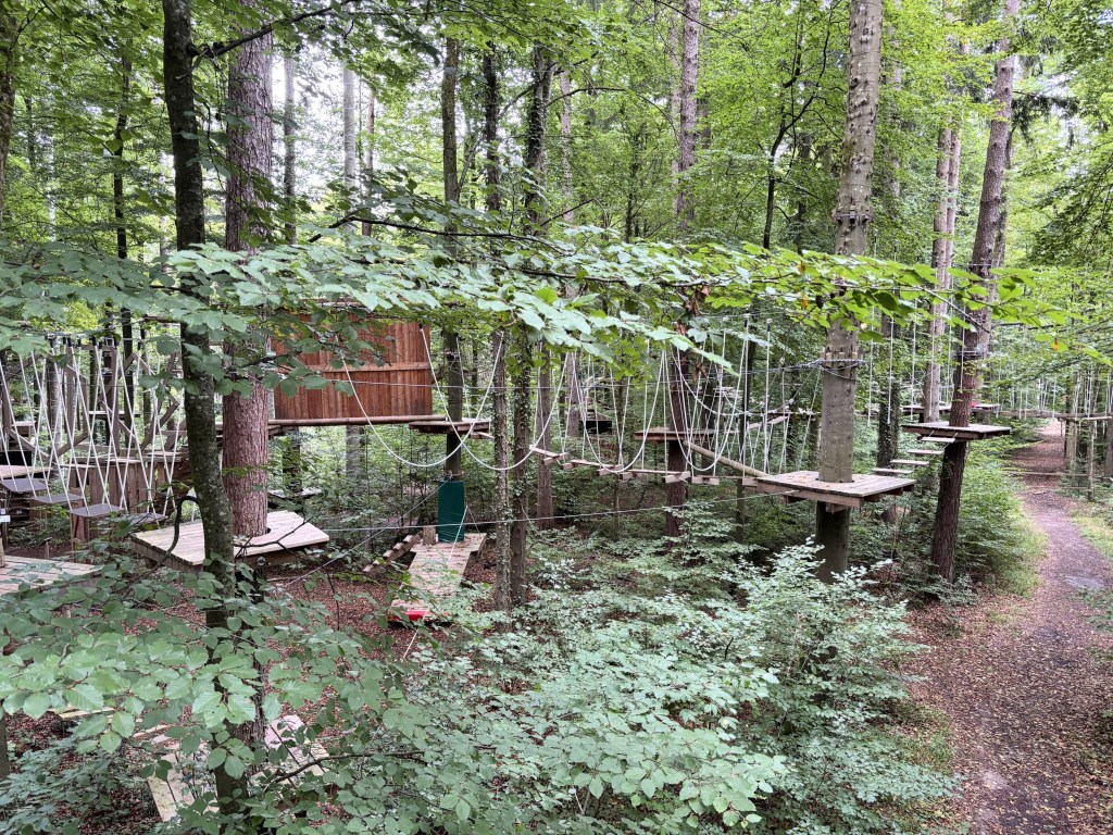 Anschliessend ging es auf den Jugendparcours mit einer Höhe von 8 Metern. Wir bewältigten auch diesen Schwierigkeitsgrad einschliesslich der Seilrutsche. Das hat mich einiges an Überwindung gekostet. Immerhin musste man sich fallen lassen und sauste in grosser Höhe auf den nächsten Baum zu.