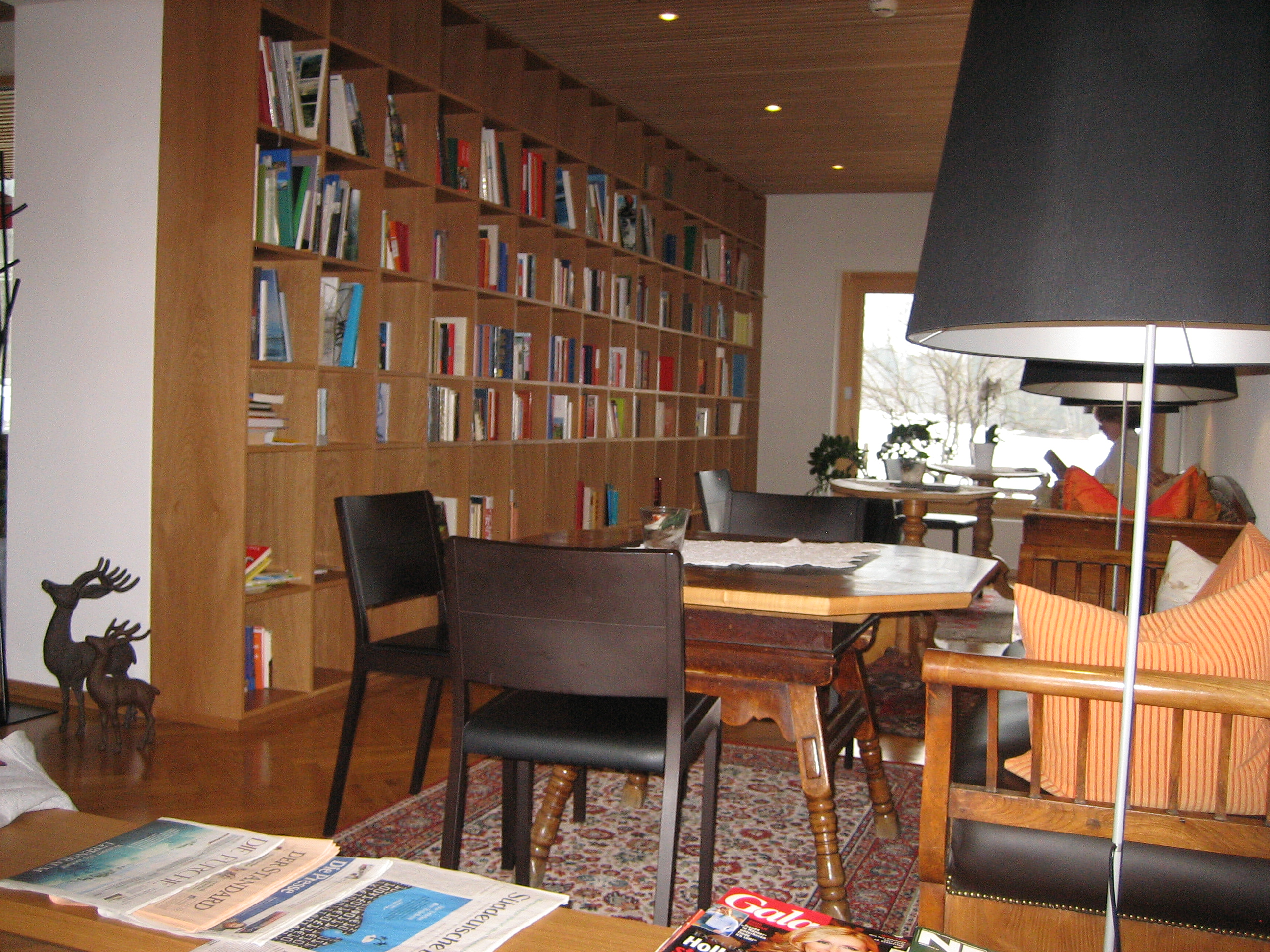 Ein kleiner, aber sehr charmanter Raum, war die Bibliothek mit jeder Menge Auswahl für trübe Tage. Auch die Bar war schön gestaltet und liess keine Wünsche offen.