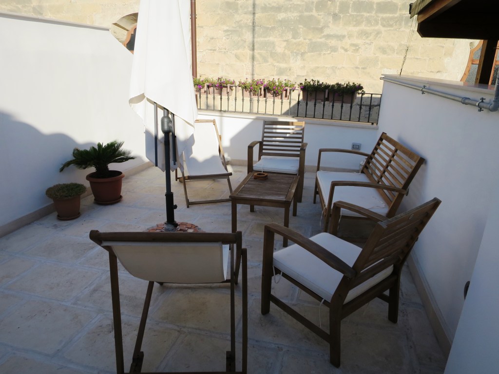 Ganz oben im Haus befand sich eine Dachterrasse, wo wir an unserem ersten Tag in Bari nach dem Abendessen noch ein Glas Rotwein genossen.