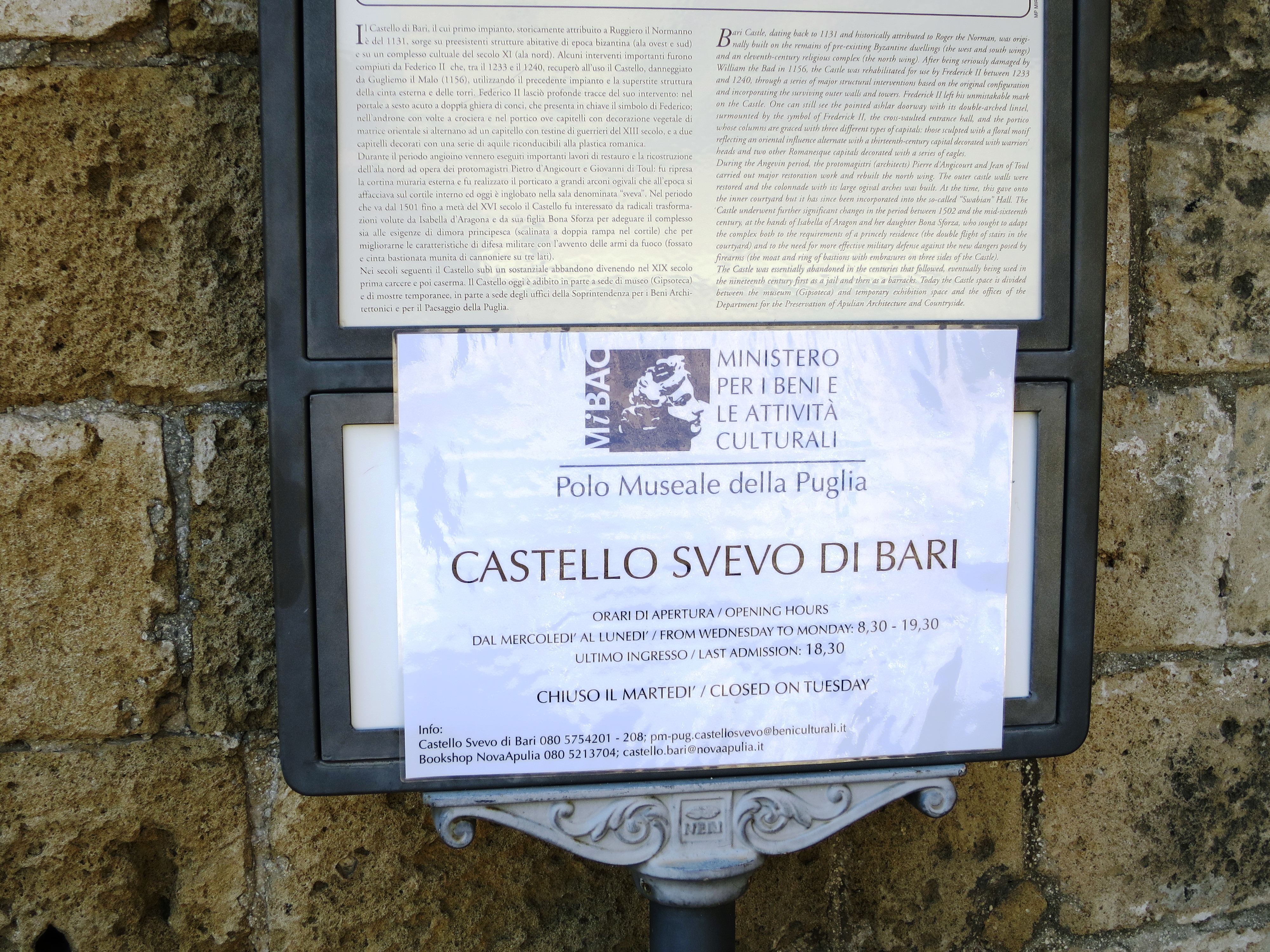 Weiter ging es zum Castello Svevo, welches ganz in der Nähe unseres Hotels am Rande der Altstadt lag. Wir fanden die Burg, die zu unserem Reisezeitpunkt mehrere Ausstellungen beherbergte, zwar sehenswert, aber jetzt doch nicht sooo spektakulär.