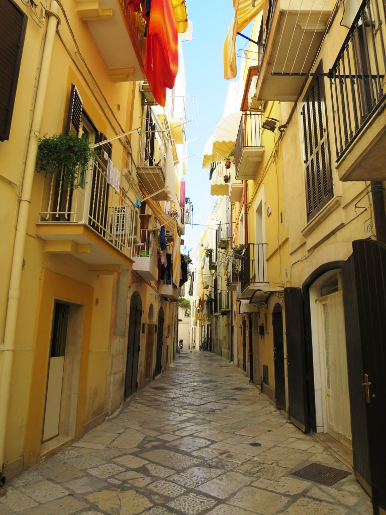 . Also, raus aus dem überfüllten Bus und erstmal ziemlich planlos auf der Strasse gestanden. Wir haben mit unseren Koffern ein paar überflüssige Runden auf holperigem Kopfsteinpflaster gedreht, uns durchgefragt und standen endlich vor dem wunderbaren Labyrinth der Altstadt Bari Vecchia. Hier fing es an, unser la Dolce Vita.
