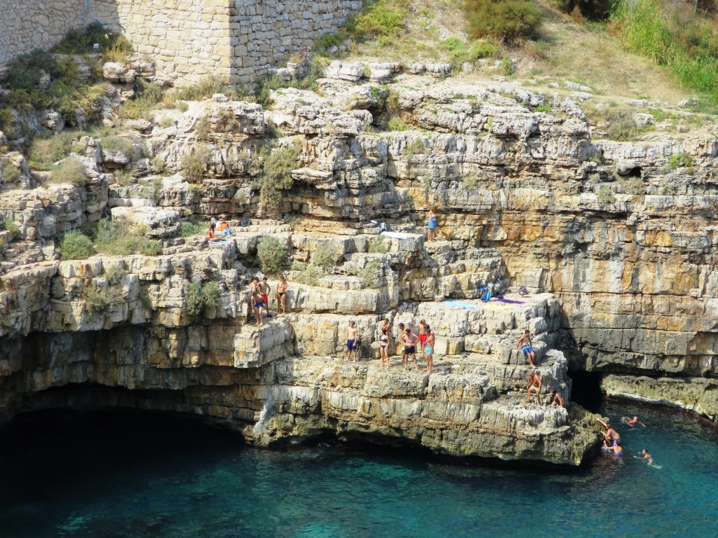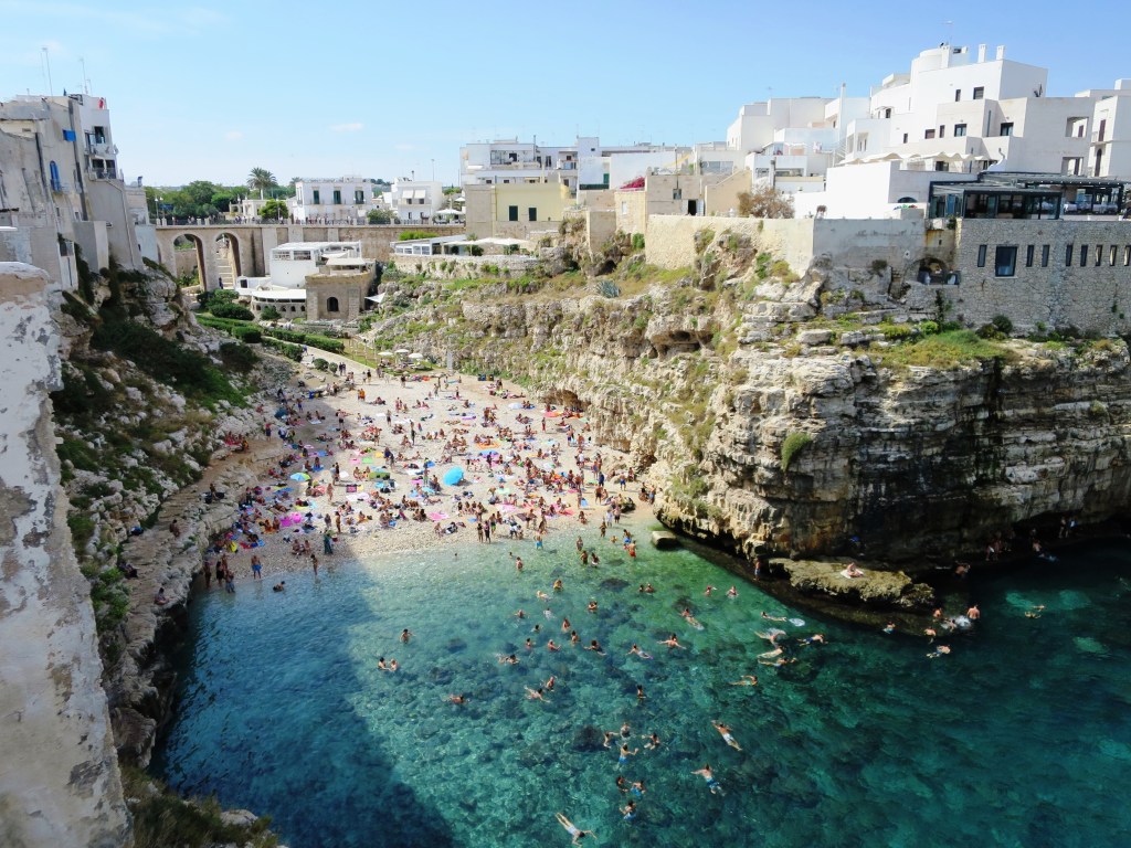 Sehenswert war auch der Stadtstrand von Polignano, wo sich Einheimische und Touristen im Wasser vergnügten.