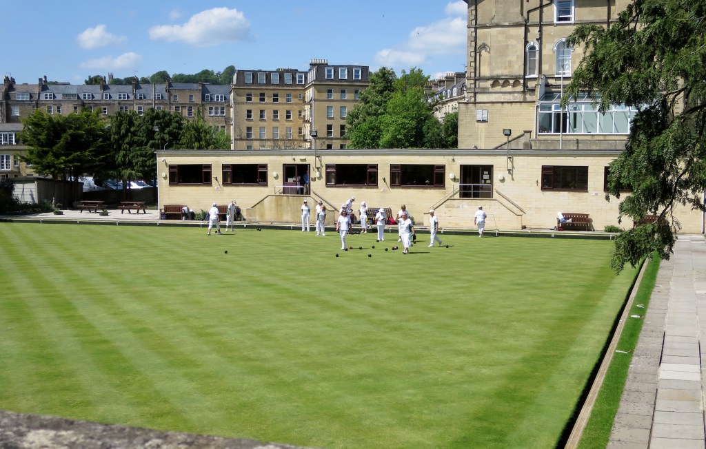 Und das Erste, was wir auf dem gepflegten englischen Rasen rechts neben dem Hotel sahen, waren ältere, in perfektes Weiss gekleidete Herrschaften, die mit grosser Ernsthaftigkeit Bowls spielten. Also … nicht, dass ich vorher gewusst hätte, was das ist … aber nun weiss ich es.