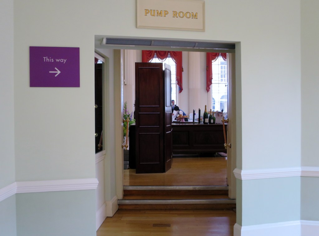 Im Anschluss an die Roman Baths kam man in den Pump Room, einem prächtigen Raum, der wohl einst als eine Art Wandelhalle diente, wo die High Society ihr Heilwasser trank. Übrigens hätten auch wir einen Schluck von dem Wasser nehmen können, aber wir bevorzugten eines, das im Glas kribbelt. Heute beherbergt dieser Raum ein sehr schönes Restaurant, angeblich das schönste in Bath.