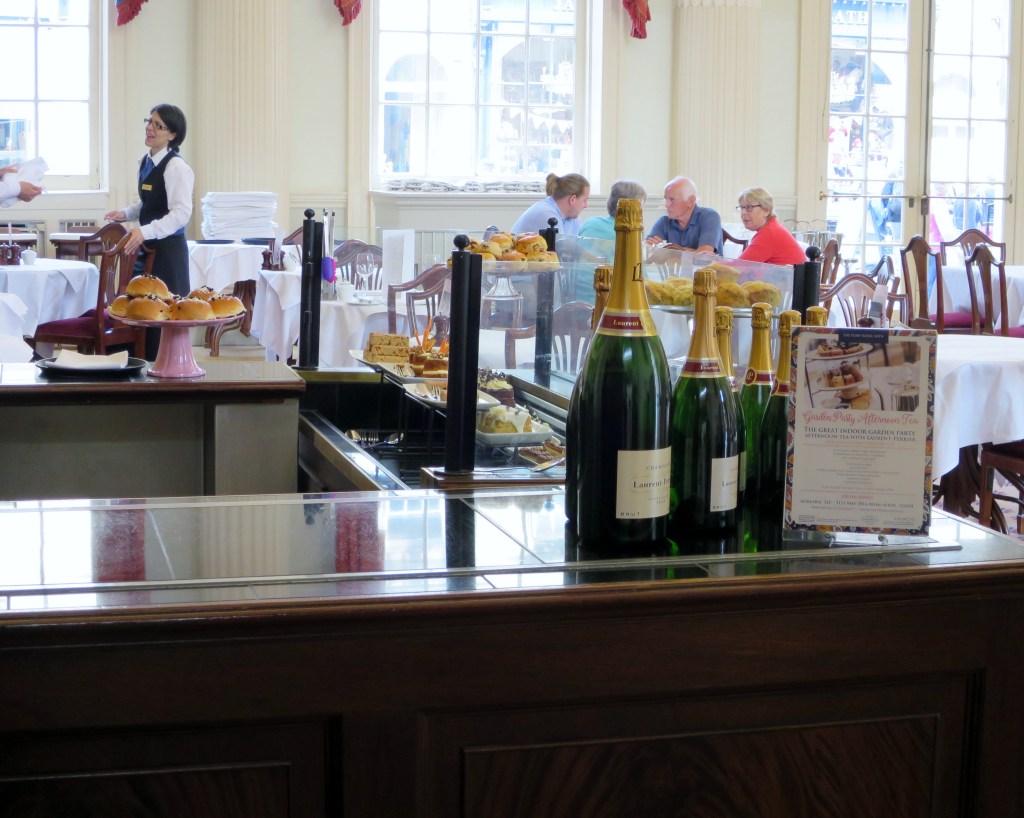 Es war bereits wieder ziemlich später Nachmittag und – da es uns im Carluccio das letzte Mal so gut geschmeckt hatte – beschlossen wir, dieses Restaurant am Milsom Place nochmals aufzusuchen. Nach einer kurzen Wartezeit erhielten wir doch noch einen Tisch auf der voll besetzten Terrasse. So ein Glück und die Sonne schien immer noch. Wir liessen es uns richtig gut gehen … feiner Fisch, Bratkartöffelchen, Tiramisu …