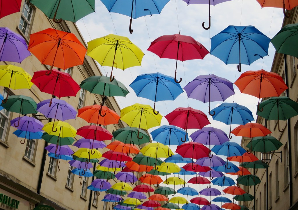 Und auch dies ist Bath, ein kunterbuntes Städtchen, in dem sich offenbar alles draussen tummelt, wenn die Sonne scheint.