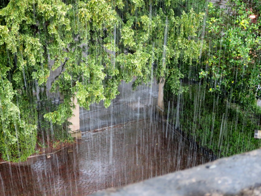 Am späten Nachmittag schafften wir es soeben noch ins Hotel, bevor der grosse Regen einsetzte (Blick aus dem Hotelfenster).