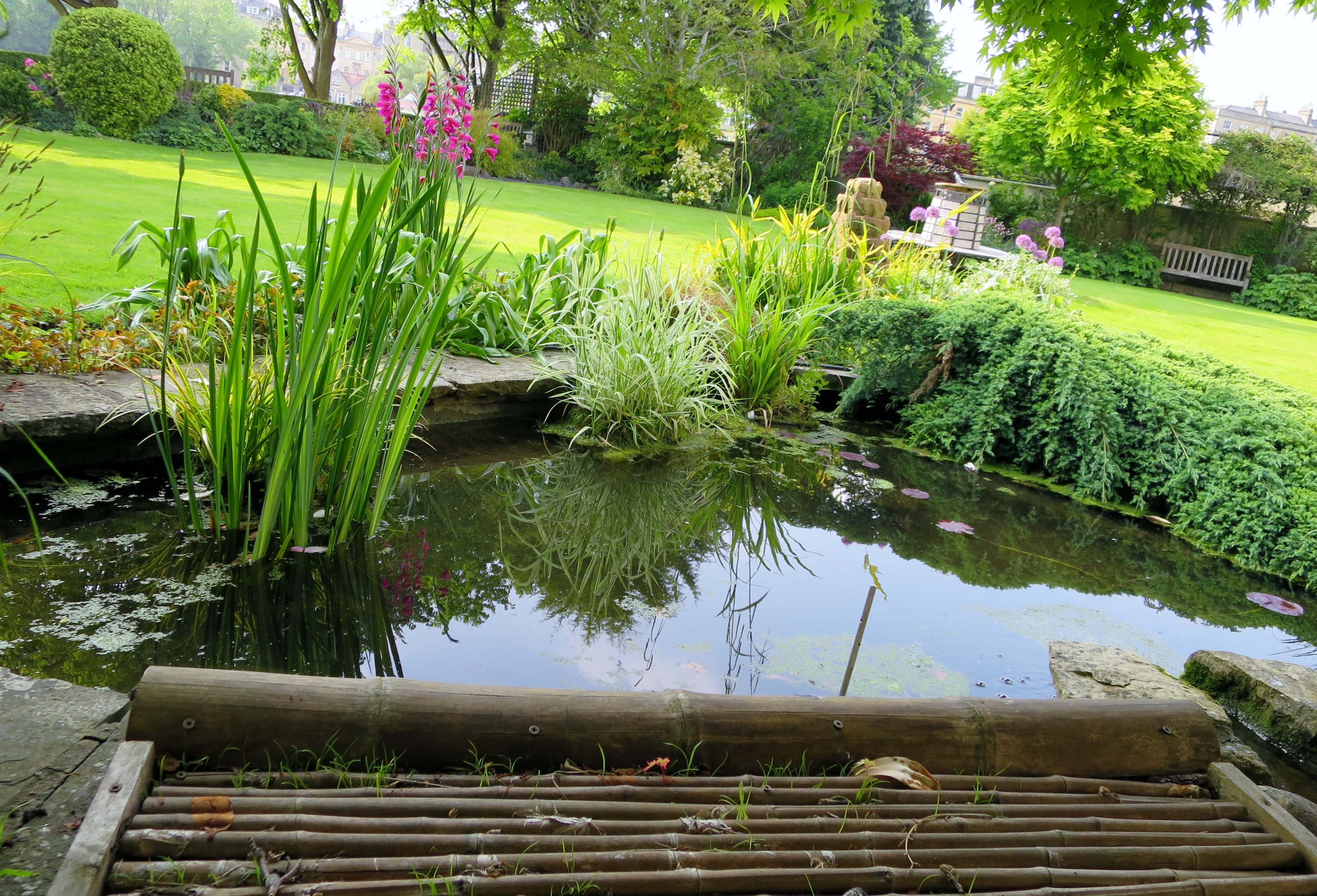 Wie auch immer … mir gefiel das Hotel mit seinem etwas maroden Charme, ohne Lift, ohne Minibar – dafür aber mit einem wunderschönen Garten. Unser Zimmer ‚Tulip‘ war angenehm gross. Die Dusche in der Badewanne war allerdings eher für kleine Leute gedacht. Der Duschkopf war fest angebracht und nicht beweglich und ich musste in die Knie gehen, damit ich drunter passte… Und was mir gar nicht gefiel … unzählige englische Sender und kein einziger brachte das Champions League Finale am Samstag. 2 Sterne Abzug, mindestens.