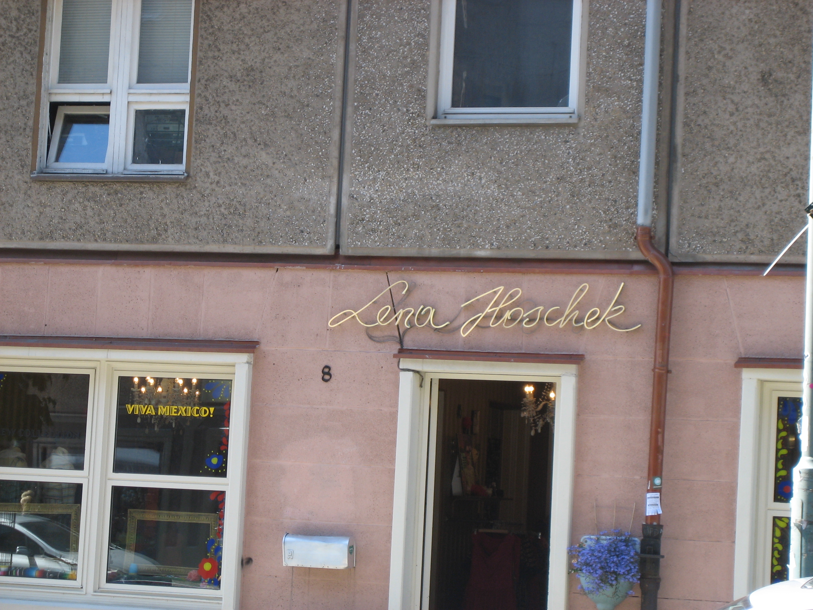 Von meiner lieben Arbeitskollegin hatte ich den Tipp bekommen, unbedingt den kleinen Laden von Lena Hoschek zu besuchen. Das Geschäft ist zum niederknien, wenn einem- so wie mir – die Mode der 50er Jahre gefällt. Die Boutique sollte in der Nähe der Hackeschen Höfe zu finden sein und unser Handy-Navi kannte den Weg. Sie öffneten gerade und ich stöberte mit Begeisterung durch die Kleider.