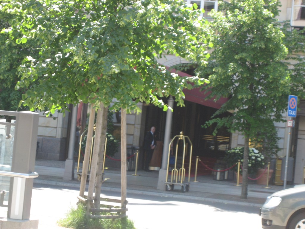 Irgendwo unter den Linden stiegen wir aus der Bahn und bummelten – diesmal bei strahlend schönem Wetter – Richtung Brandenburger Tor. Und da war es auch schon, das Adlon. Sollte ich in meinem nächsten Leben als etwas Rockefeller-ähnliches wiedergeboren werden, übernachte ich hier. Aber erst einmal mussten Kaffee und Kuchen auf der Terrasse ausreichen. Ich wollte ein Stück Erdbeerkuchen und dachte mir beim Blick in die Karte, dass ich eigentlich nicht die Absicht gehabt habe, das ganze Erdbeerfeld zu kaufen. Aber was soll’s … das konnte man sich vorher denken und der Kuchen war lecker.