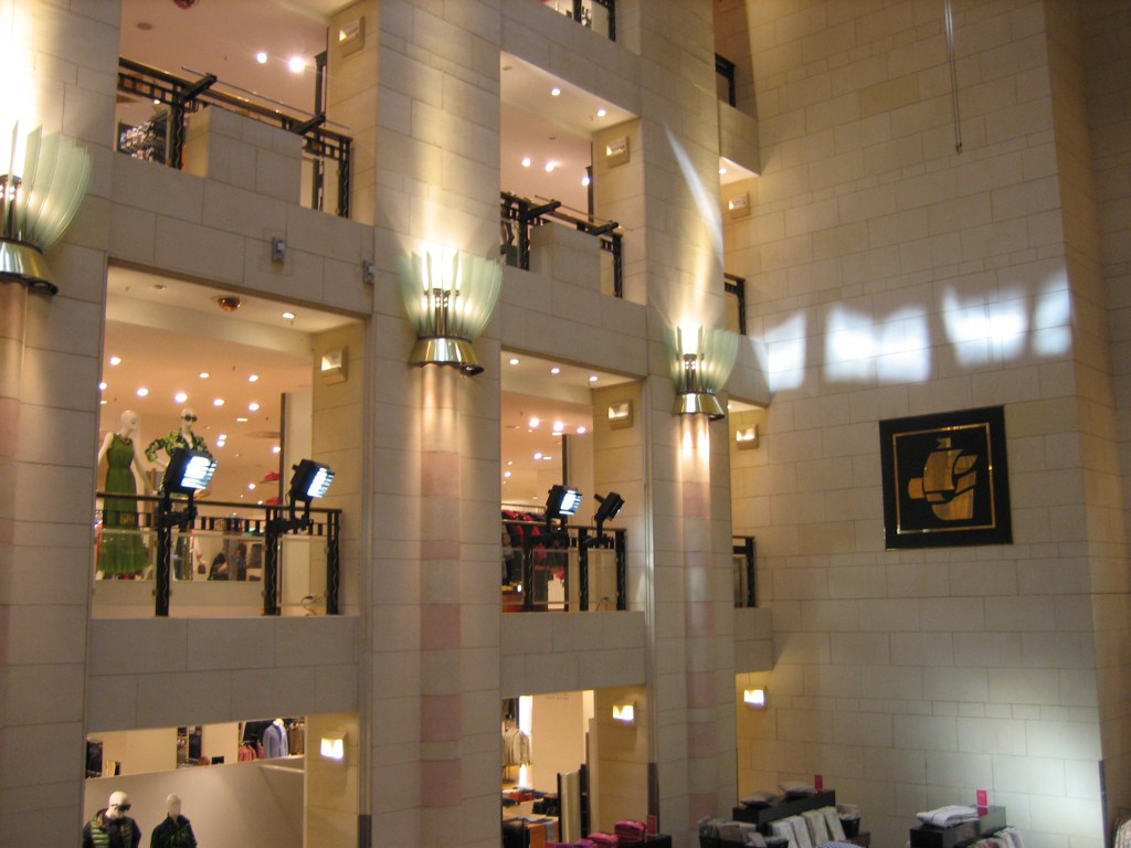 Und weiter ging’s … Richtung KaDeWe. Ob man in der Feinkostabteilung wohl ein Fleischkäsbrötchen bekommen würde? Wir hatten Hunger. Auf dem Weg zur Feinkost musste allerdings erst noch die Schuh-Abteilung überwunden werden. Das dauerte einen Moment … anschliessend hatten wir noch mehr Hunger. Die Lebensmittelabteilung war fast menschenleer und mir taten die Angestellten fast leid, die sich die Beine in den Bauch stehen mussten und auf Kundschaft warteten. Es gab zwar kein Fleischkäsbrötchen, das war wohl irgendwie zu einfach, aber wir bekamen auf einem Teller eine Scheibe Fleischkäs mit einem Brötchen, was schlussendlich auch seinen Zweck erfüllte. Jedenfalls ein bisschen.