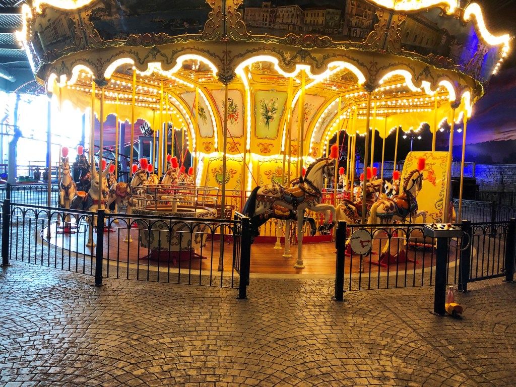 Aber Mitte September war es dann soweit … Enkelsohn (8 Jahre) hatte Zeit und einen passenden time slot haben wir auch gefunden. Nämlich direkt nach Öffnung des Parks um 12:45 Uhr. Nur das Wetter …