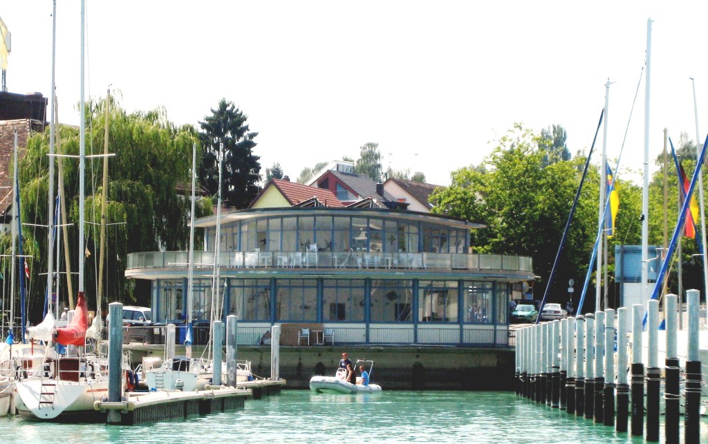 Aber zurück nach Langenargen. Am Abend freute ich mich auf mein Standard-Abendessen im Restaurant Fischerhütte, Kartoffelpuffer. Die mag ich selbst bei mehr als 30 Grad ;-). Aber Pustekuchen … der Pächter des Restaurants hatte gewechselt und somit auch die Karte. Also keine Kartoffelpuffer. Dafür habe ich festgestellt, dass Mücken eine gute Hilfe beim Abnehmen wären… man schlägt den halben Abend verzweifelt um sich, bis das Essen kalt ist und man es eh nicht mehr mag. Die Mücken waren eine echte Plage an diesem Abend und das Anti-Brumm hatten wir natürlich auf dem Schiff vergessen. Wenn das jetzt in jedem Hafen so wäre… das konnte ja heiter werden. Den Espresso nahmen wir dann lieber ein Haus weiter, dort war es mit den Viechern nicht ganz so schlimm.