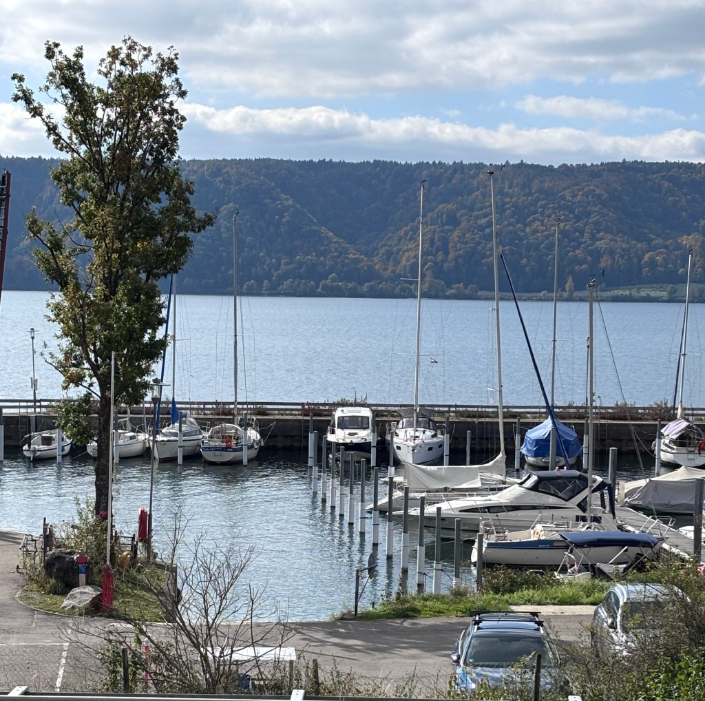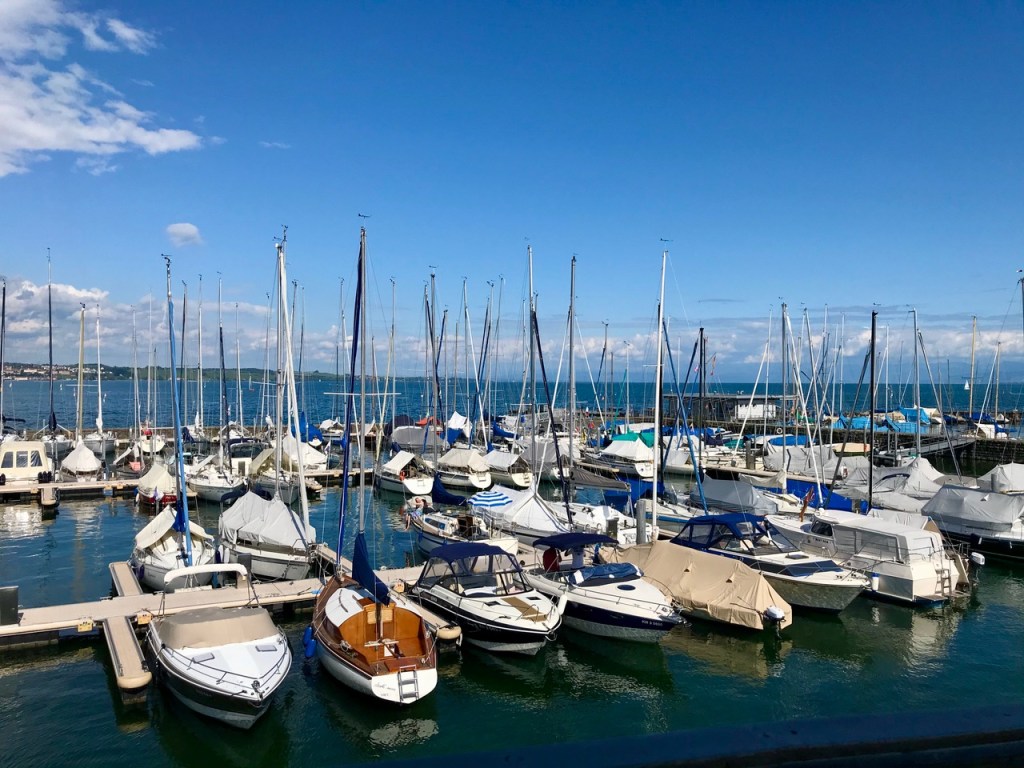 Am nächsten Morgen merkte ich, dass ich noch nicht so richtig in den Ferien angekommen war. Aus meinem Handy-Wecker dudelte sanfte Harfenmusik. Und das um 5 Uhr morgens. Mein Mann musste einen gesegneten Schlaf haben, er hörte weder den Wecker noch mein Fluchen. Glück für ihn :-). Übrigens kenne ich rund um den See jeden Bäcker in Hafennähe. Und ich geniesse es sehr, in der Früh einen kleinen Spaziergang zu machen und frische Brötchen zu holen, während mein Mann in der Zwischenzeit den Kaffee macht. Wunderbaren Kaffee, nebenbei bemerkt. Der Bäcker in Romanshorn hat sich leider zu seinem Nachteil verändert, die Brötchen waren einer Gummi-Ente ähnlich und ich hätte sie ebenso gut im Supermarkt nebenan kaufen können.