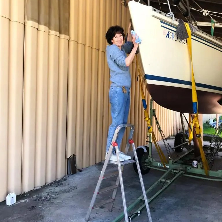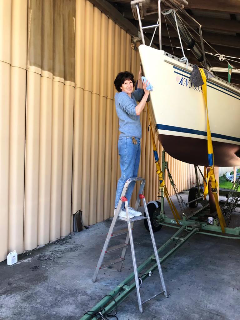 Übrigens habe ich den einen oder anderen Kollegen, der sicher schon mal einen schönen Film übers Segeln gesehen hat und der Meinung ist, das bedeutet, schön gestylt in weissen Klamotten dekorativ auf dem Boot drapiert durch den genau passenden Wind – nicht zu flau und nicht zu viel – zu gleiten smiley. Also … nicht, dass das nicht auch genauso vorkommen kann … aber segeln heisst auch manchmal, mit dem Wind kämpfen, nass werden, in der Kajüte rumkrabbeln auf der Suche nach irgendwas, schmutzige Hände zu haben und … zu putzen. In fast jedem Hafen wurde ein bisschen rumgewienert, irgendetwas gibt es immer zu tun und man möchte ja schliesslich ein gepflegtes Boot haben. Obwohl ich zugeben muss, dass ich mich auch ab und zu gedrückt habe. Ich weiss nicht, woher mein Mann an diesen heissen Tagen noch die Energie hatte… ich hab mich bei der Hitze gefühlt wie eine platte Fliege.