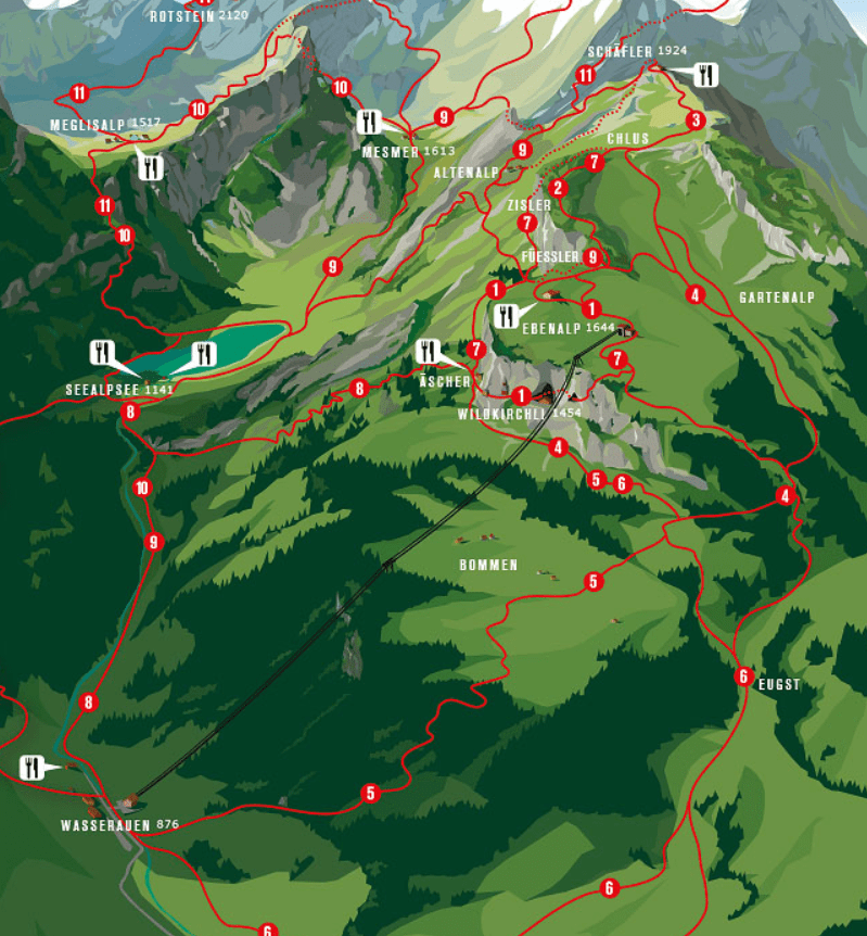 > Von Wasserauen mit der Luftseilbahn auf die Ebenalp, 1644 m.ü.M.