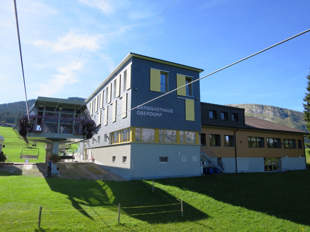 Im September, ausserhalb der Ferienzeit, hält sich der Andrang in Grenzen und man ist in ein paar Minuten mit der Sesselbahn auf 1230 m.ü.M. … ausser man wird von einem Touri mit überdimensionalem Rucksack am Ticketschalter aufgehalten, der – die Leute hinter sich ignorierend – in aller Seelenruhe minutenlang irgendwas ein- oder auspackt :-).