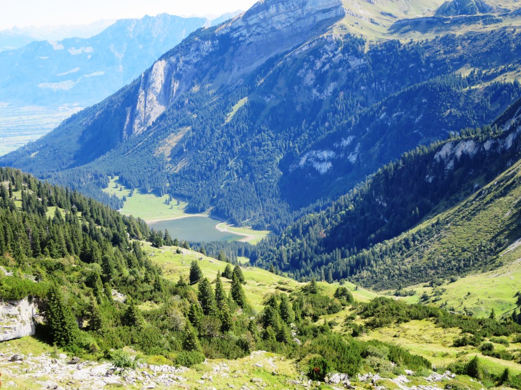 Und hier, mit Blick auf den Voralpsee im Tal, fanden wir genau das richtige Bänkchen für eine Rast und unser Vesper.