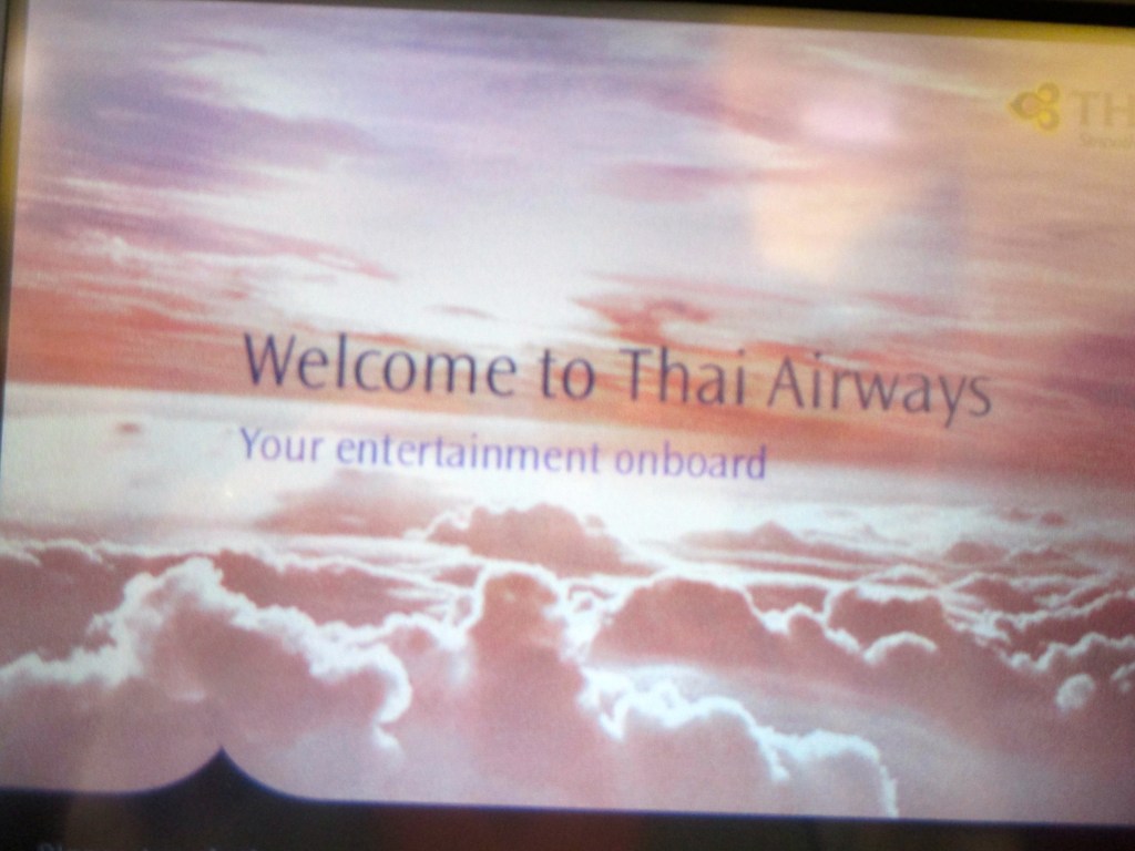 Na ja, ob man sich jetzt so unbedingt ‚welcome‘ fühlen konnte, war die Frage. Wir sind bisher noch nie mit Thai geflogen und waren gespannt … angeblich sollte diese Airline ja ziemlich gut sein. Worunter jeder wahrscheinlich etwas anderes versteht, nehm ich an. Der A340-600 bot – zumindest auf dem Hinflug – ein paar Zentimeter mehr Beinfreiheit, was natürlich angenehm war.