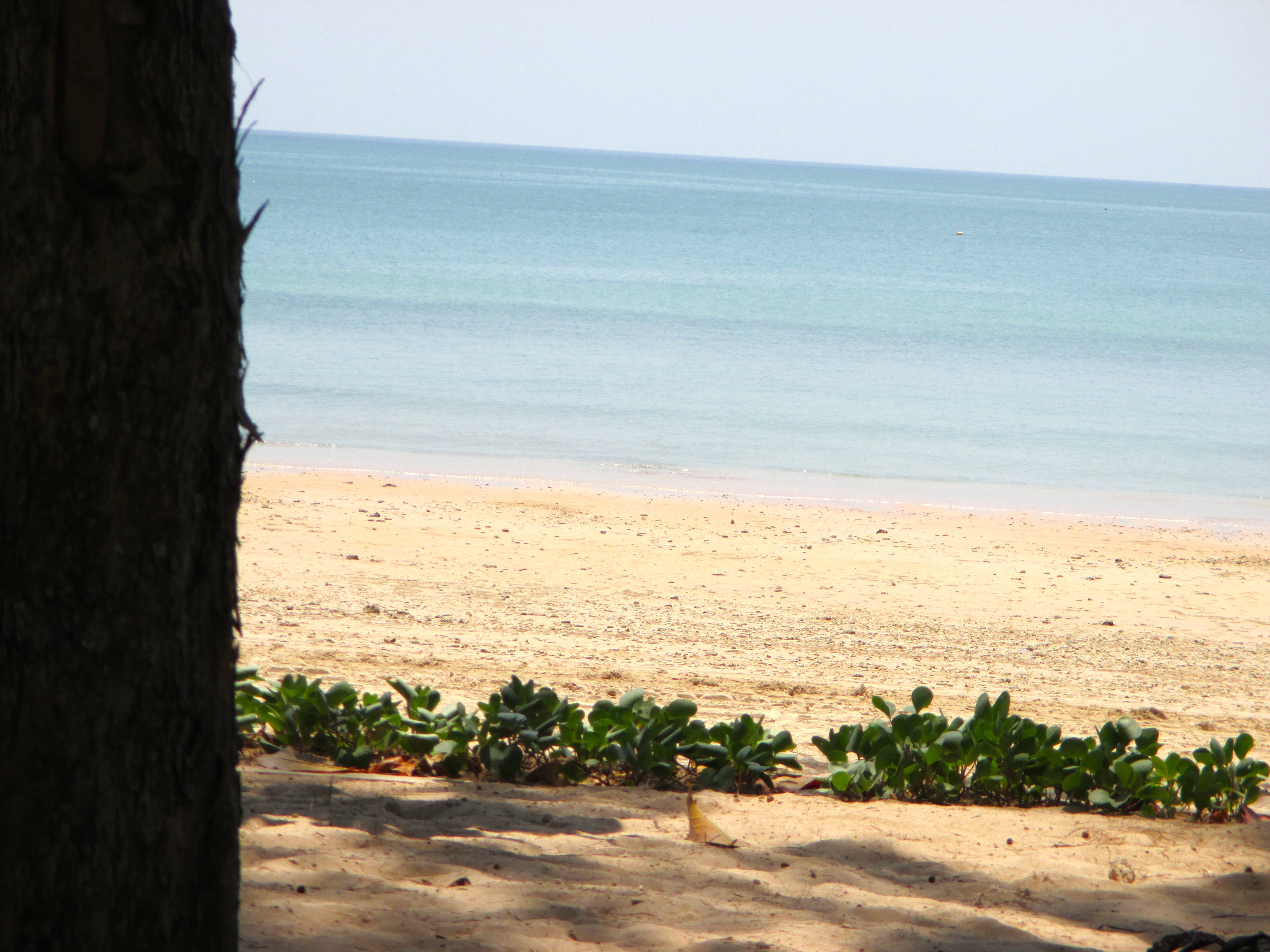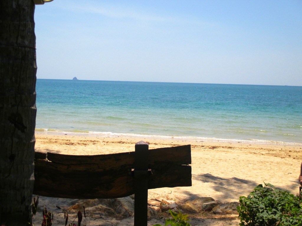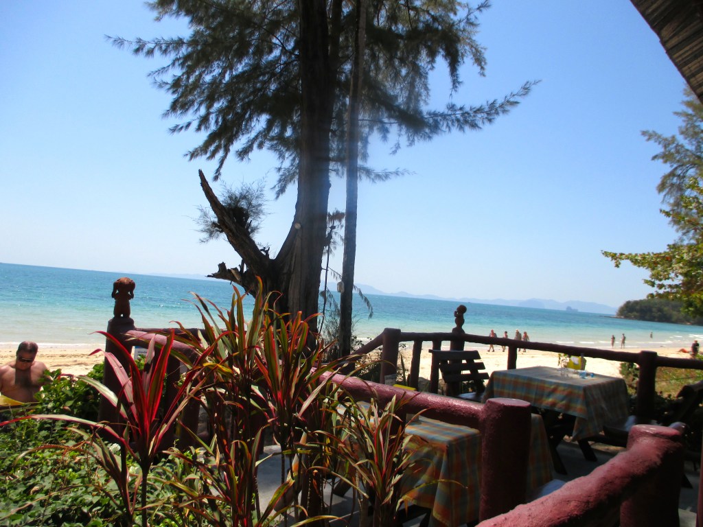 So liess es sich aushalten und so sollten wir einen grossen Teil unseres Urlaubs verbringen. Die grosse Hitze hinderte uns daran, wahnsinnig aktiv zu sein. Was uns aber jetzt nicht wirklich etwas ausmachte smiley. Die einzige wichtige Entscheidung, die im Augenblick zu treffen war … ‚gehen wir nach rechts oder nach links den Strand entlang‘. Wir gingen rechts und auch hier wurden – nur ein paar Meter weiter – in mehreren offenen Räumen am Strand Massagen angeboten, die offenbar beliebt waren und rege genutzt wurden. Ebenfalls beliebt zum Mittag- und Abendessen war das kleine Strandrestaurant, das wunderbare Thaiküche und einen schönen Blick auf’s Meer bot.