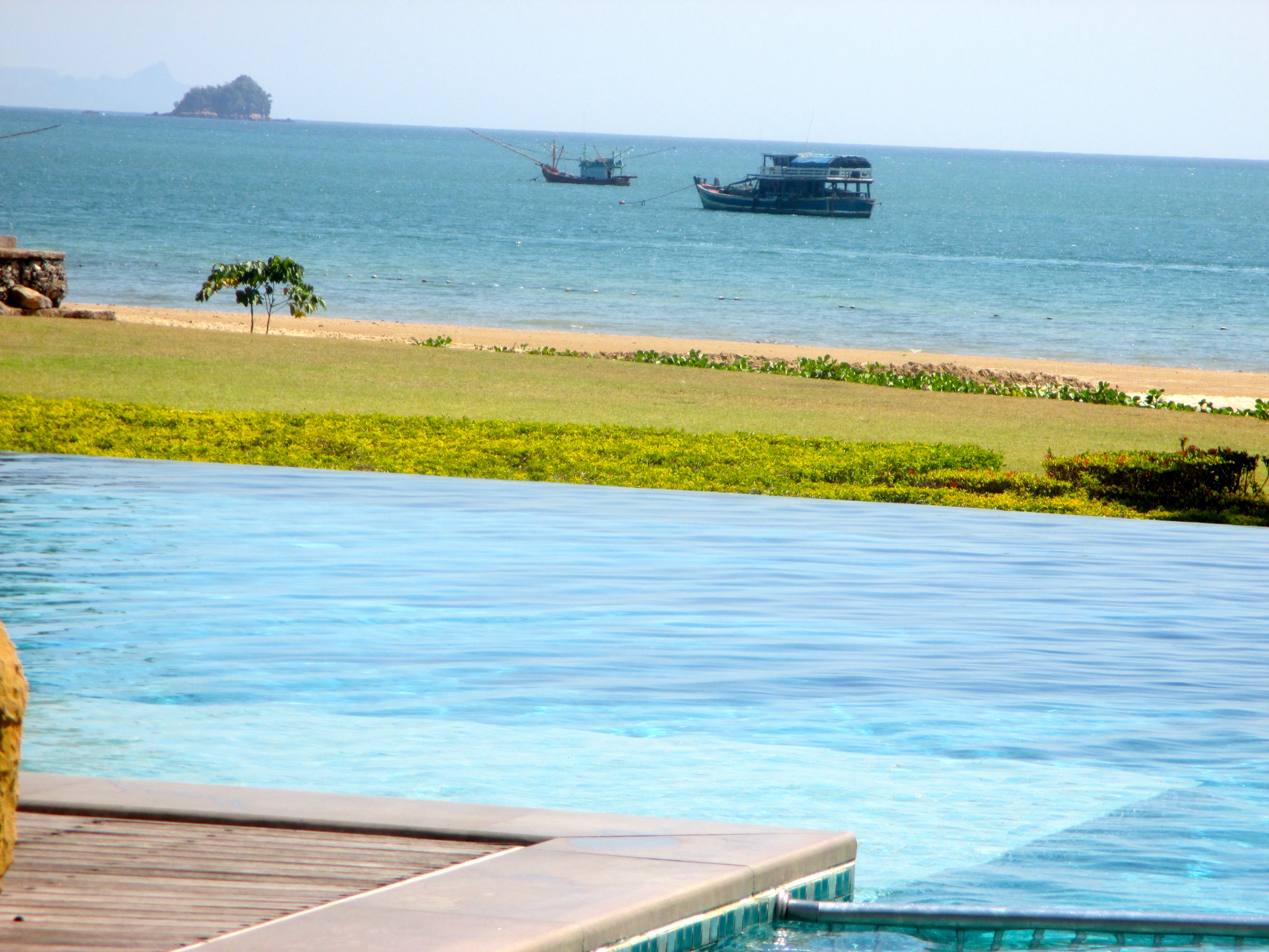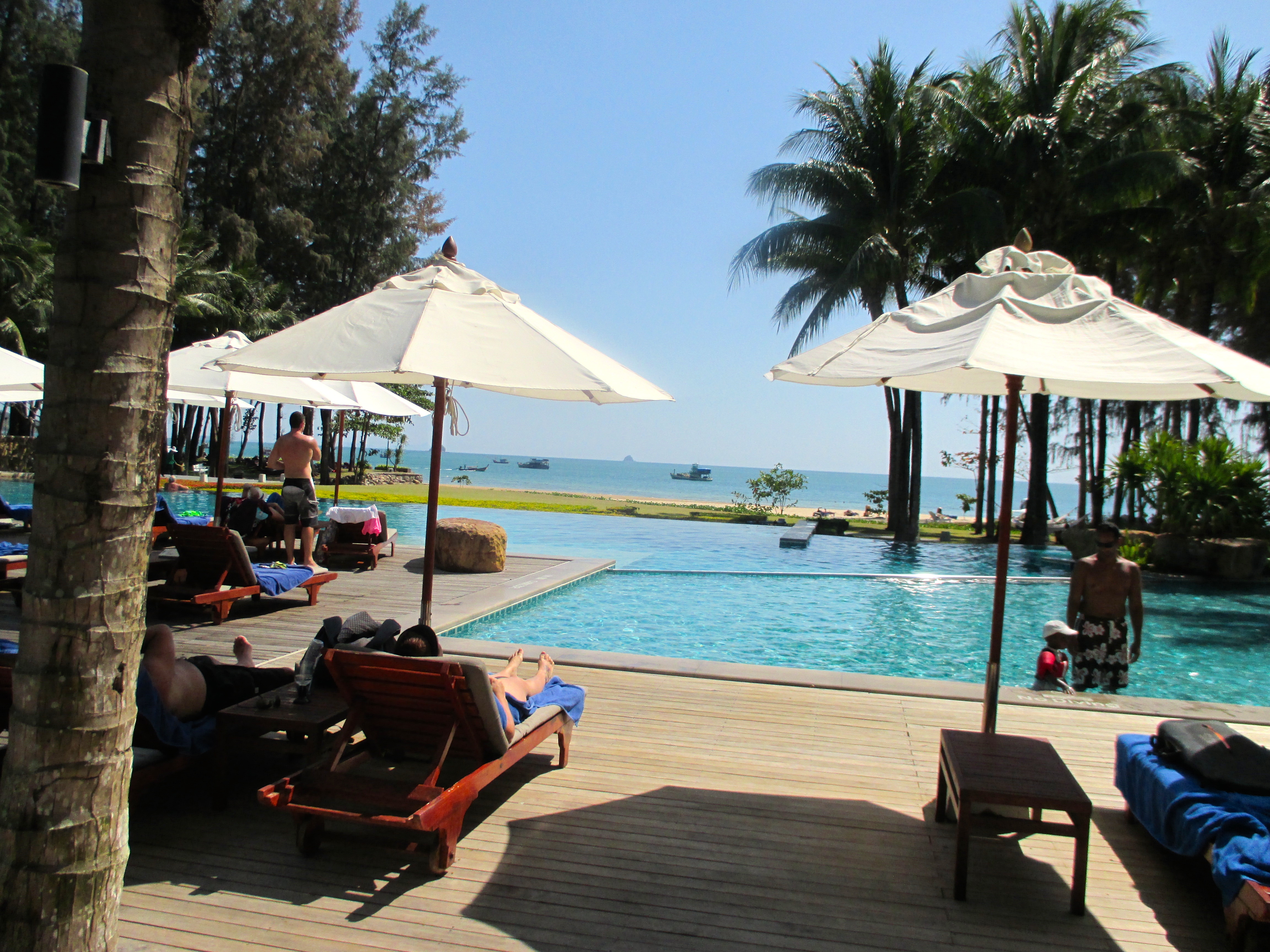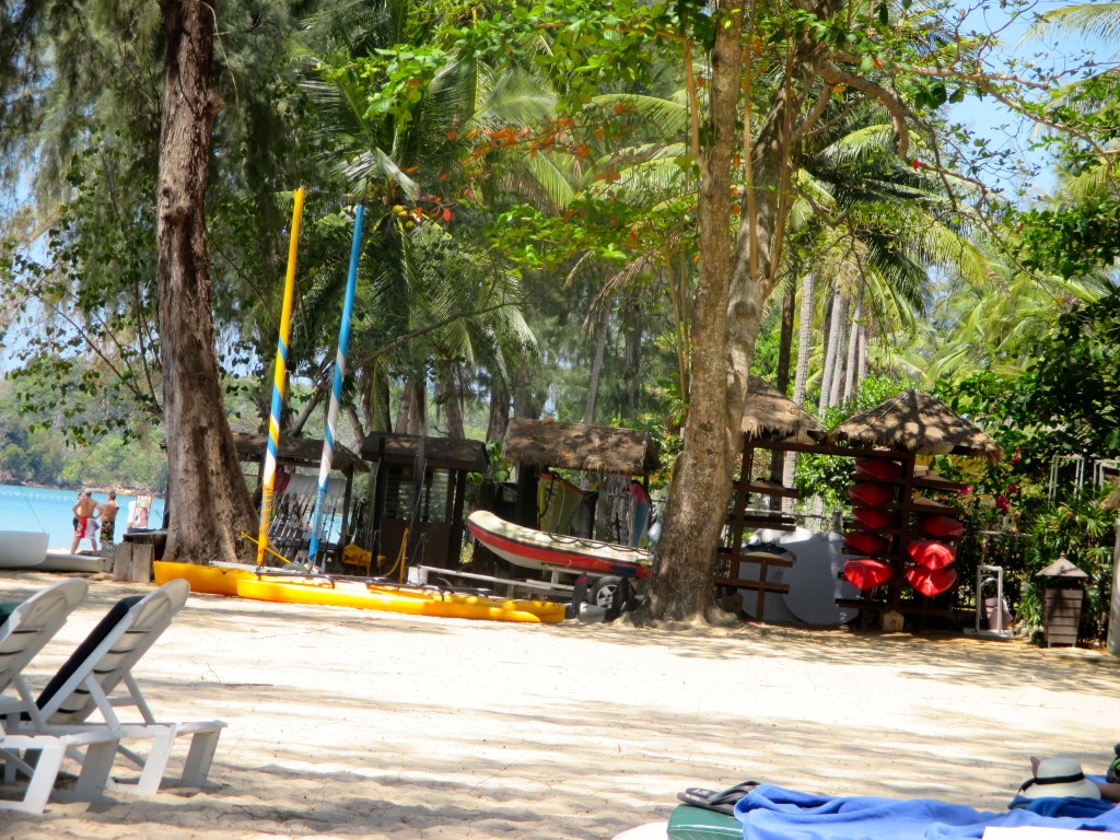 Ansonsten waren wir hier wohl an einem der schönsten Abschnitte der Andamanensee. Das Wasser warm, der Sand fein, bequeme Liegen unter Palmen … genau so, wie ich mir das in meinen winterlichen Tagträumen durch’s Bürofenster vorgestellt hatte. Wenn man Lust hatte, konnte man ein Kanu, ein Surfbrett oder einen Katamaran mieten. Manche der Gäste gingen als Mensch auf’s Wasser und kamen als Krebs wieder heraus …