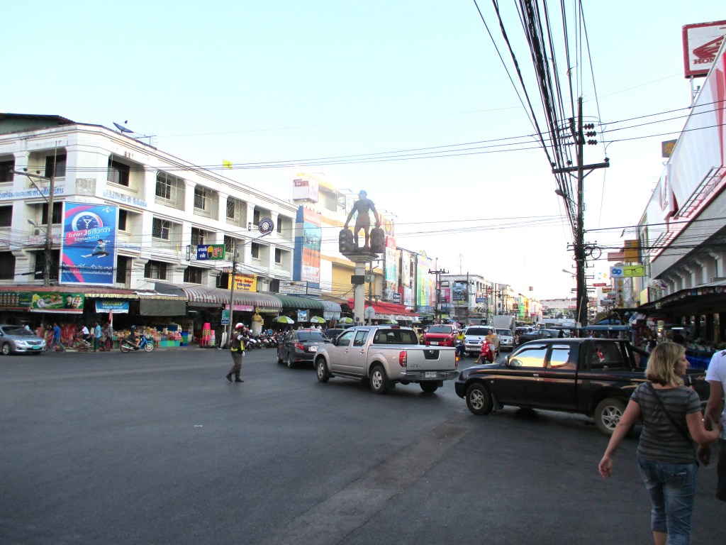 Ach ja, einen Taxistand gab es auch noch. Fein säuberlich auf einer Tafel waren die Fahrpreise angeschrieben, die allerdings verhandelbar waren. Die Fahrer lümmelten auf einer Art ‚überdachter Holzliege‘ und das war offenbar ’sanuk‘, was soviel wie Spass bedeutet. Sanuk kann sich auf alles mögliche beziehen … ein Schläfchen, ein Fest, ein Essen. Anstrengende Dinge oder Belastendes gehören nicht zu ’sanuk‘, deshalb beschäftigt der Thai sich lieber erst gar nicht damit. Und das ist nicht despektierlich gemeint … es ist einfach die Lebenseinstellung der Thais.