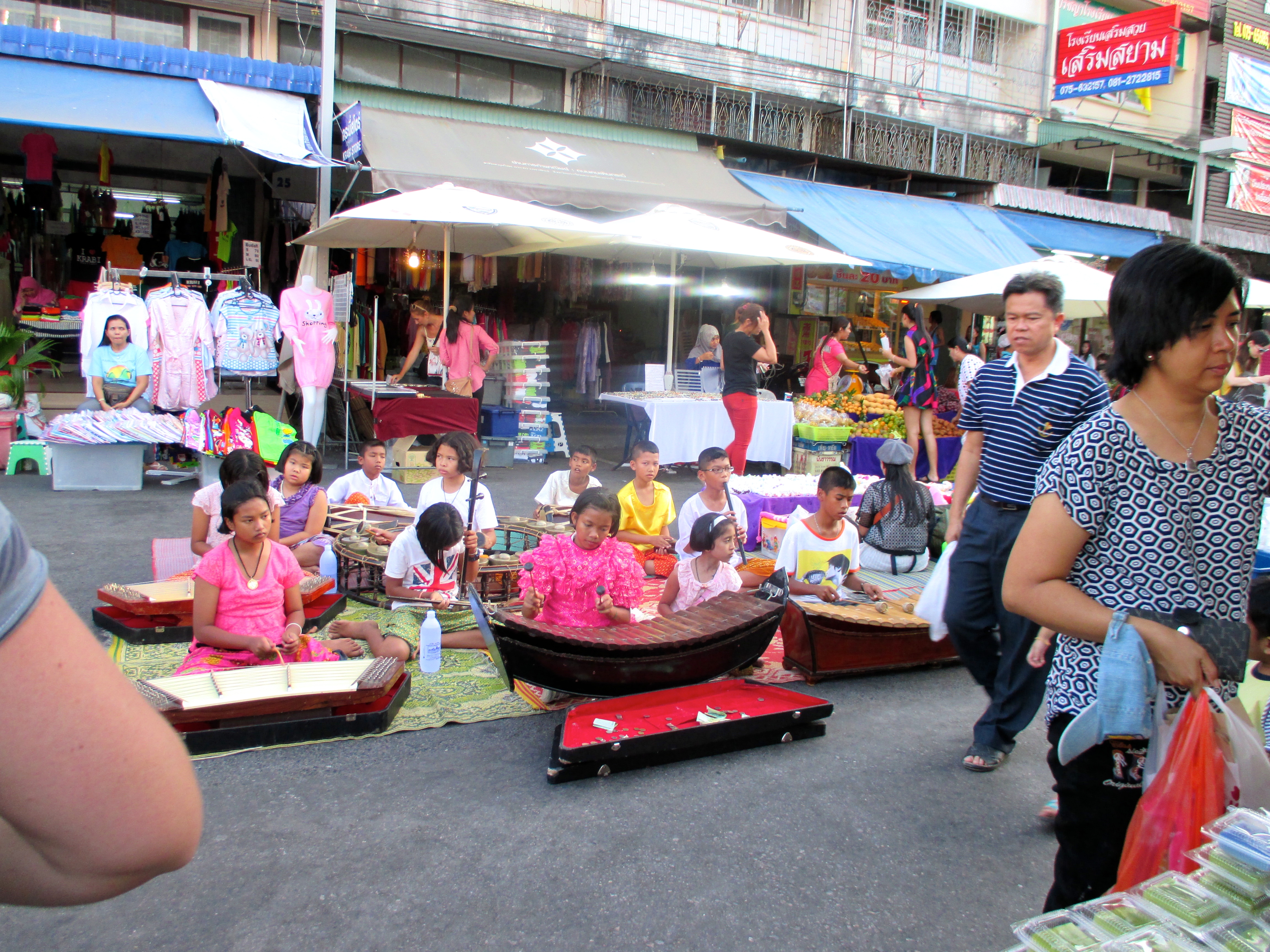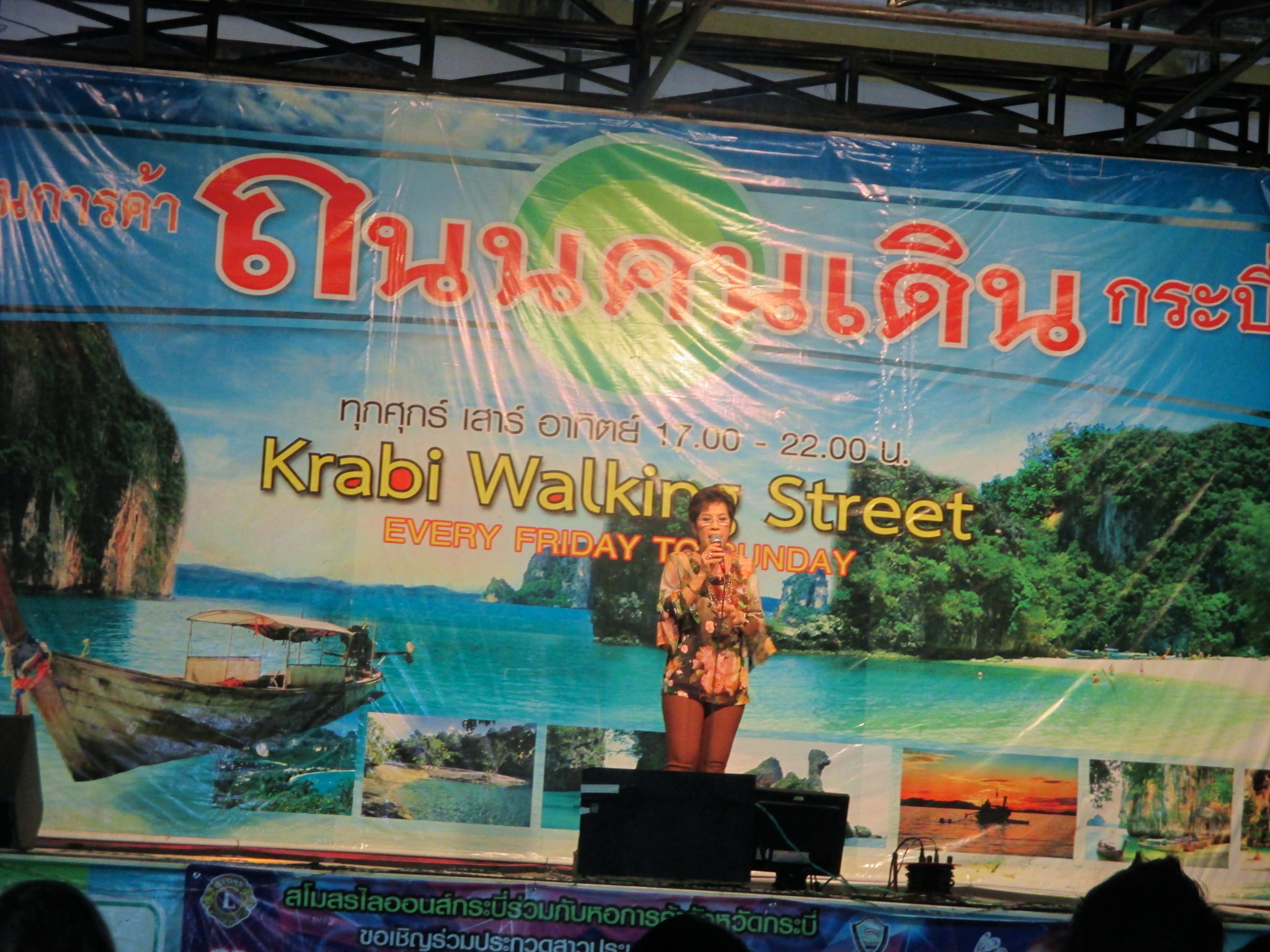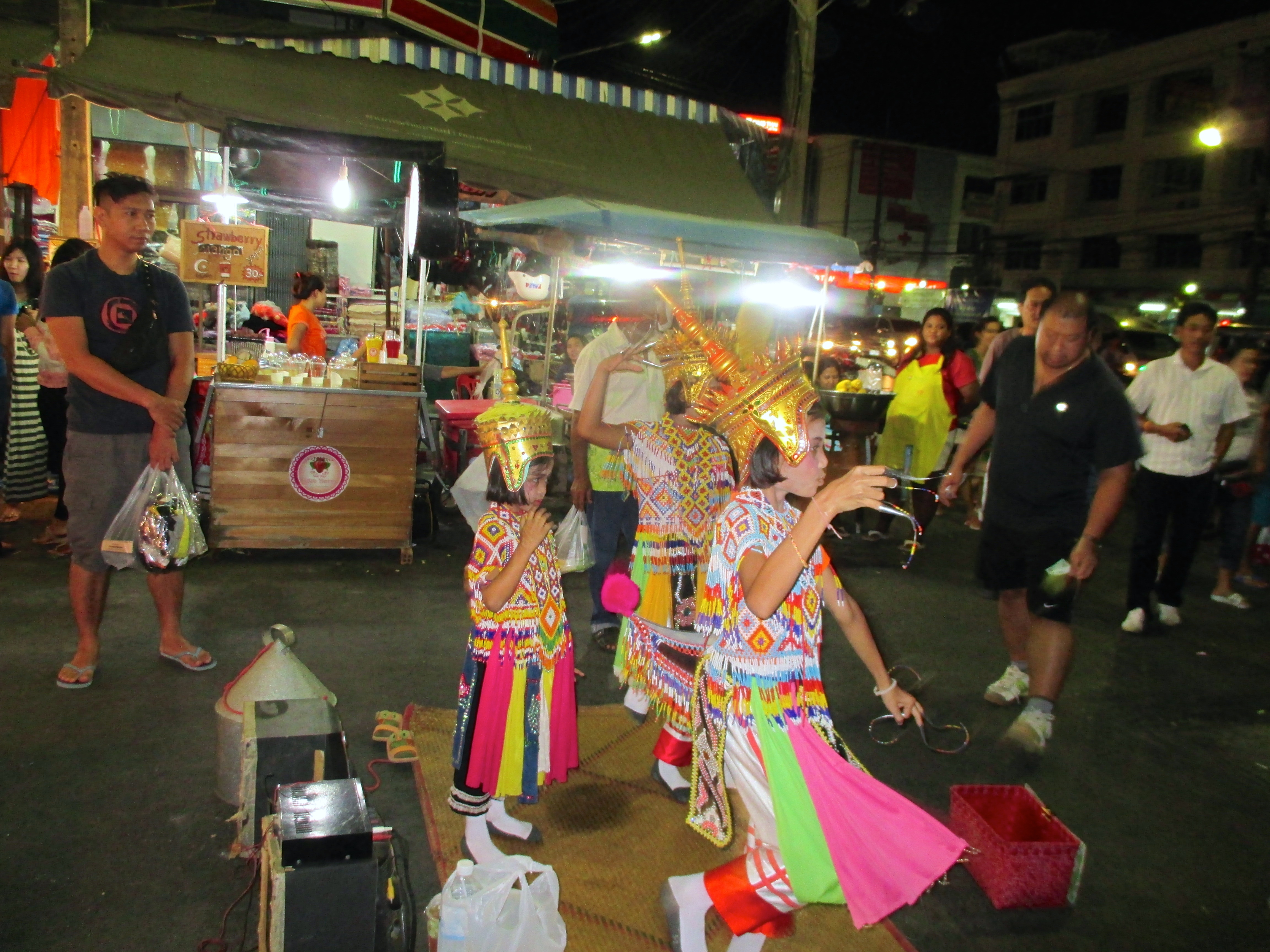 Der Nachtmarkt in Krabi war ganz interessant. Hier konnte man fast alles kaufen, vor allem bekam man bei all den Leckereien und diversen Essensdüften Hunger. Eine Karaoke ‚Show‘ und niedliche tanzende Thaimädchen durften natürlich nicht fehlen. Und ein bisschen ‚Strassenkunst‘ …