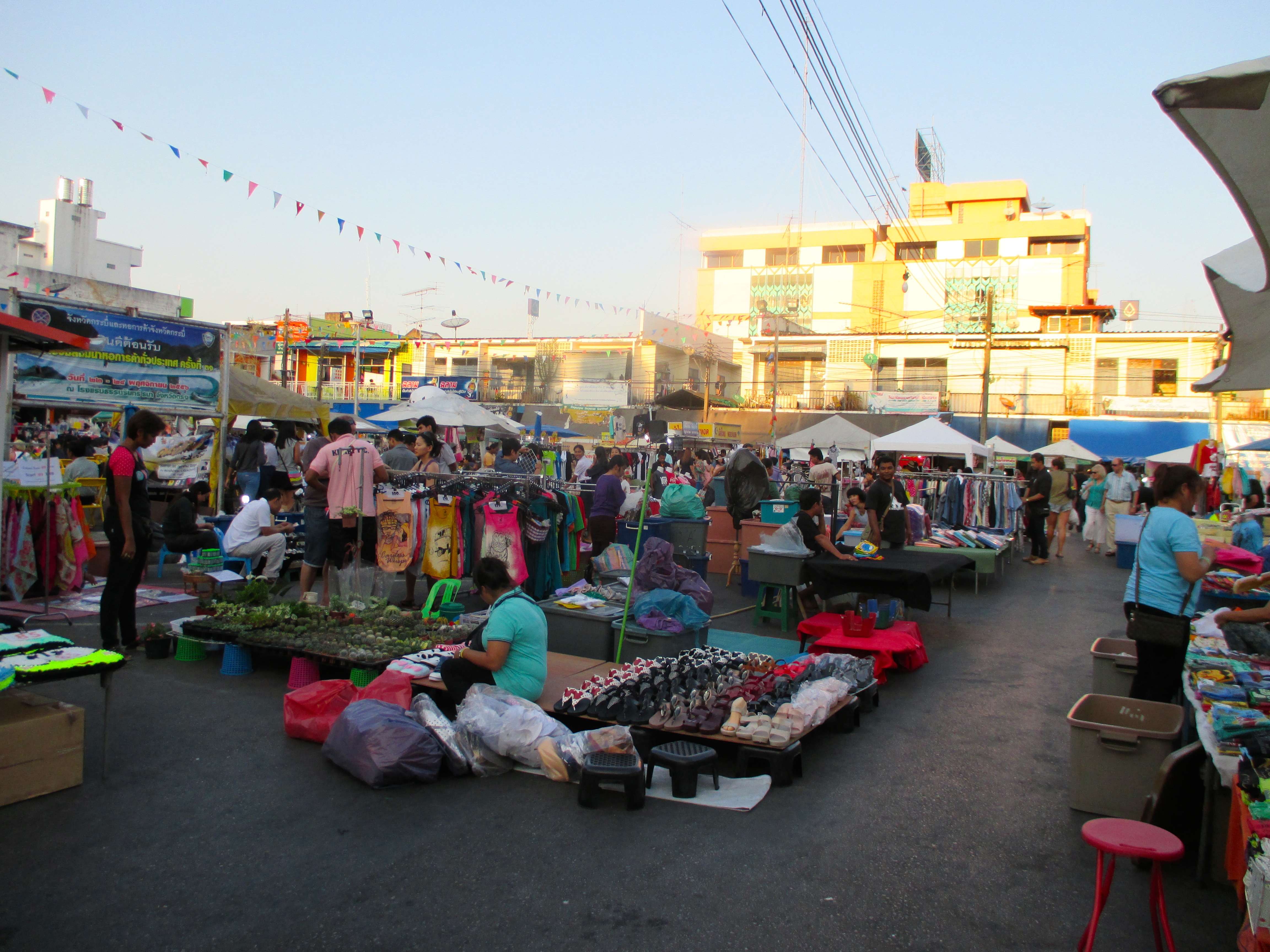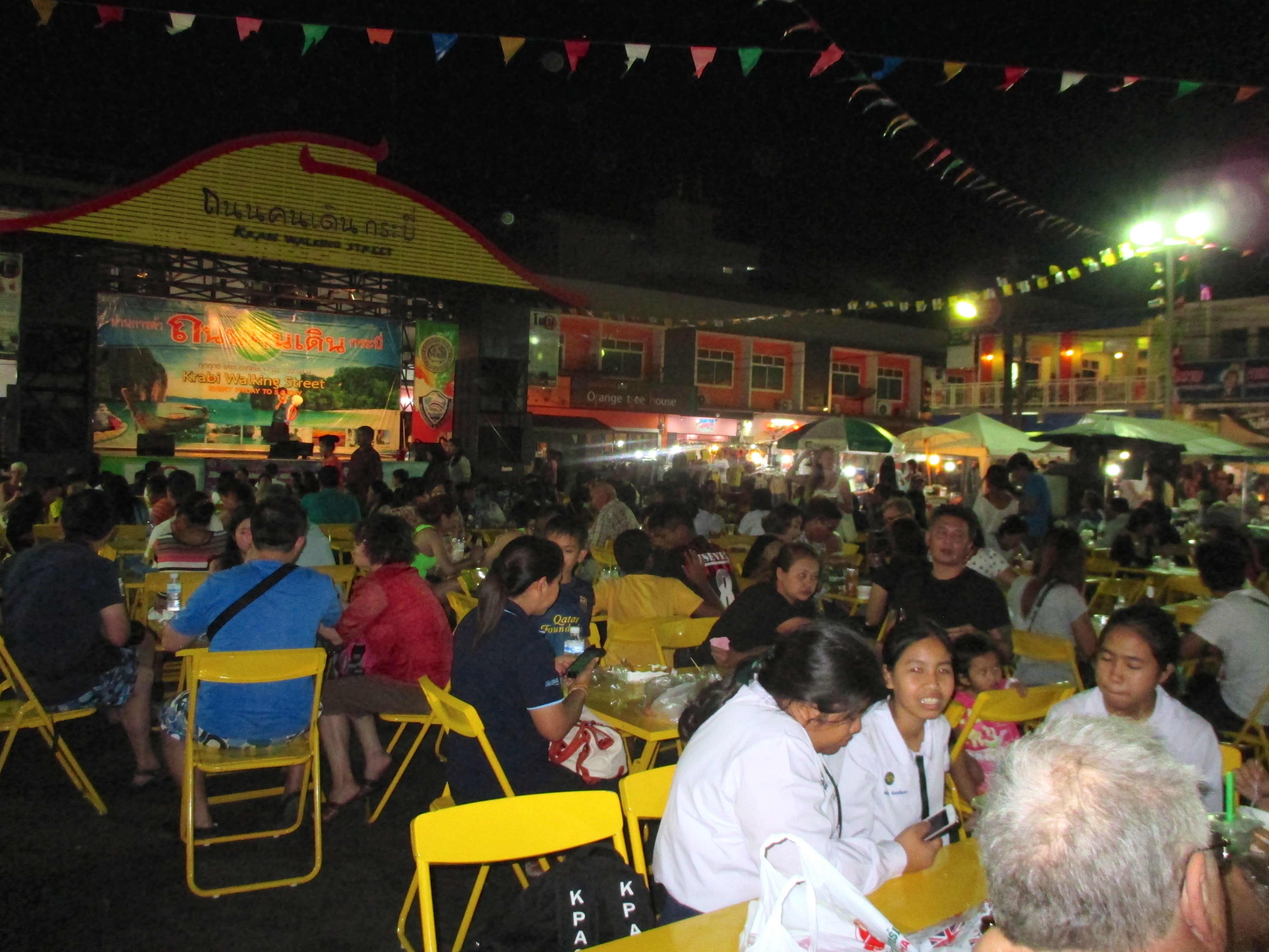 In Krabi gab es jeweils Freitag bis Sonntag einen Nachtmarkt. Wenn schon mal was geboten wurde, liess man sich dies natürlich nicht entgehen. Der Hotel Shuttle fuhr uns und andere Gäste am frühen Abend nach Krabi. Im Vorbeifahren sah ich in verschiedenen Gärten einen Elefanten stehen und hätte zu gern angehalten, um ein Foto zu machen.