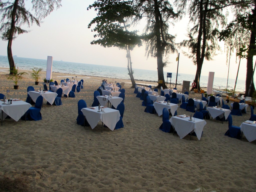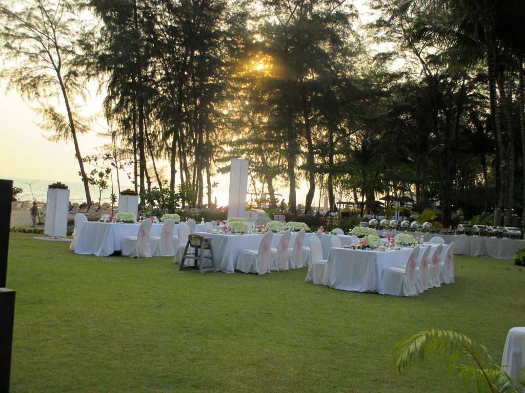 An einem unserer nächsten Strandtage beobachteten wir in der Parkanlage hektische Betriebsamkeit. Tische und Stühle wurden auf der Wiese gruppiert, eine Bühne aufgebaut, Wasserbecken mit Seerosen errichtet, Lampen aufgestellt.