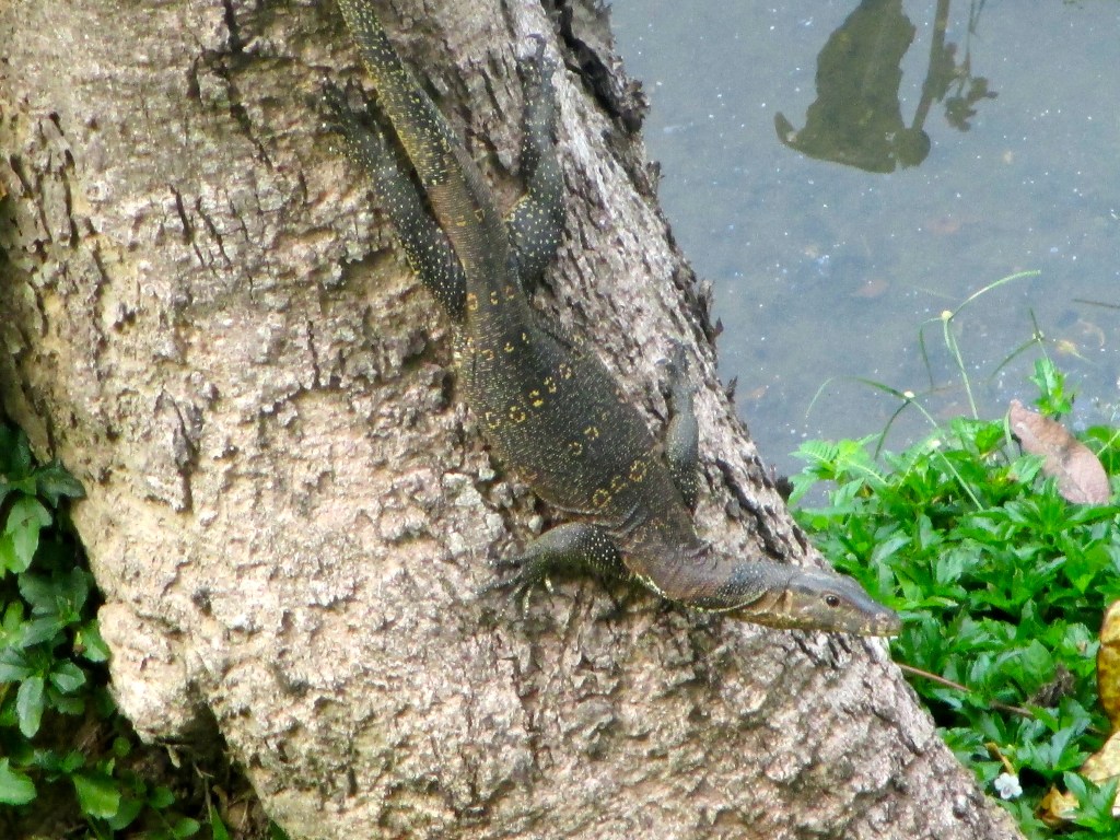 Eines Tages war Aufruhr in der Nähe der Mangroven, nur ein paar Meter hinter den Sonnenliegen. Auch hier ging es um ein Tier. Man hätte meinen können, es sitzt ein Grizzly im Gestrüpp. Aber es handelte sich um eine Schlange, die der Gärtner soeben ins Jenseits befördert hatte. Die beiden Gärtner-Mädels hatten sie entdeckt und waren sehr erschrocken. Die Schlange war nicht riesig, aber lt. dem Gärtner giftig. Schade um das Tier … aber wenn man sich vorstellt, dass ein spielendes Kind einen Ball aus dem Gebüsch holt …  Jetzt wurde mir auch klar, warum alle Gärtner in der Anlage – und davon gab es viele –  so angezogen waren, dass man keinen Zentimeter Haut sah. Gummistiefel, Handschuhe, langärmeliger Pulli, Kopfbedeckung. Und das bei 38 Grad …