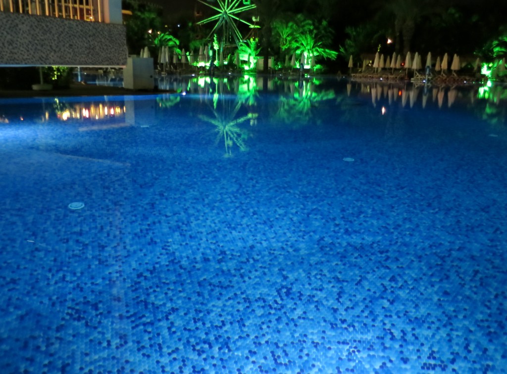 Wir kamen erst abends in Antalya an, es war bereits dunkel. Unser Gepäck hatten wir in kürzester Zeit und unser Fahrer erwartete uns bereits. Ich hatte im Internet einen Transport Antalya – Lara gebucht. Schien mir seriös zu sein (… und war es auch), zumal man keine Vorauszahlung leisten musste, sondern erst bei Ankunft im Hotel zahlen musste. Dieser private Transfer kostete uns gerade einmal 20 Euro, die Taxen am Flughafen sind wesentlich teurer. Falls sich jemand für die Seite interessiert … zu finden in den Links.
