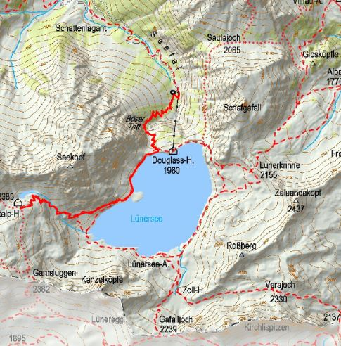 > Beginn der Wanderung an der Douglashütte, Bergstation. Am besten nach links gehend (See auf der rechten Seite). Auf diese Art hat man den An- und Abstieg (nicht zu unterschätzen) bereits hinter sich. Ab dann gemütlicher Wanderweg.