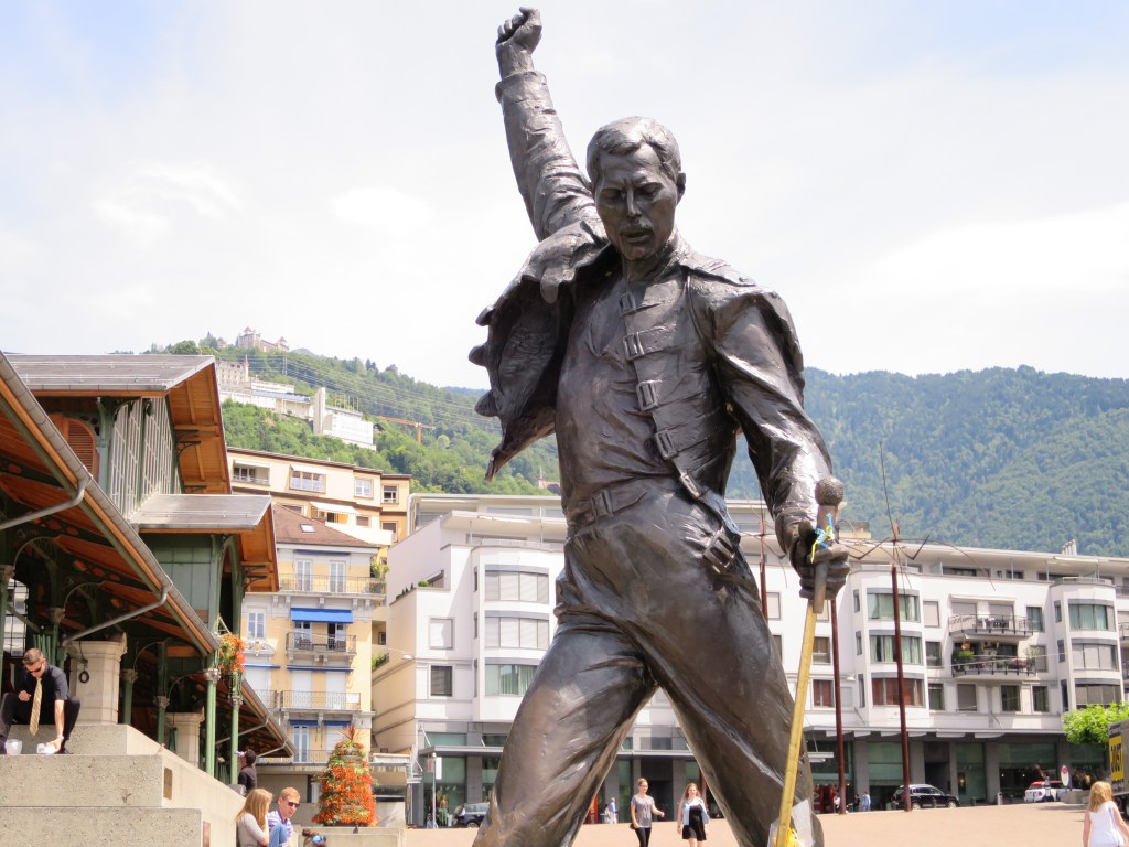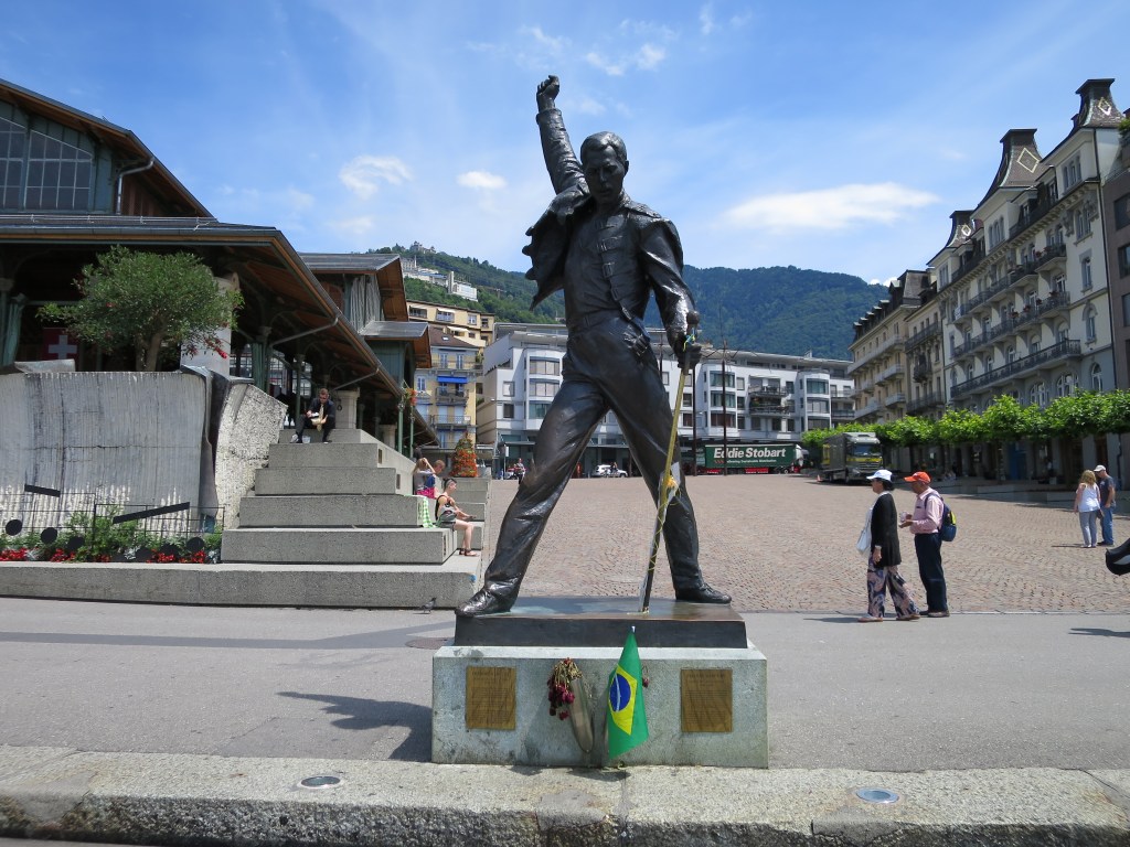 Dabei entdeckten wir auch die berühmte Freddy Mercury Statue, die seit 1996 an der Seepromenade steht. Bis dahin hatte ich nicht gewusst, dass der Queen-Sänger lange Zeit in Montreux lebte, in das er sich offenbar nach einer Teilnahme am Jazz Festival verliebte. In Montreux entstand auch sein letztes Album ‚Made in Heaven‘, dessen Cover den Genfersee zeigt.