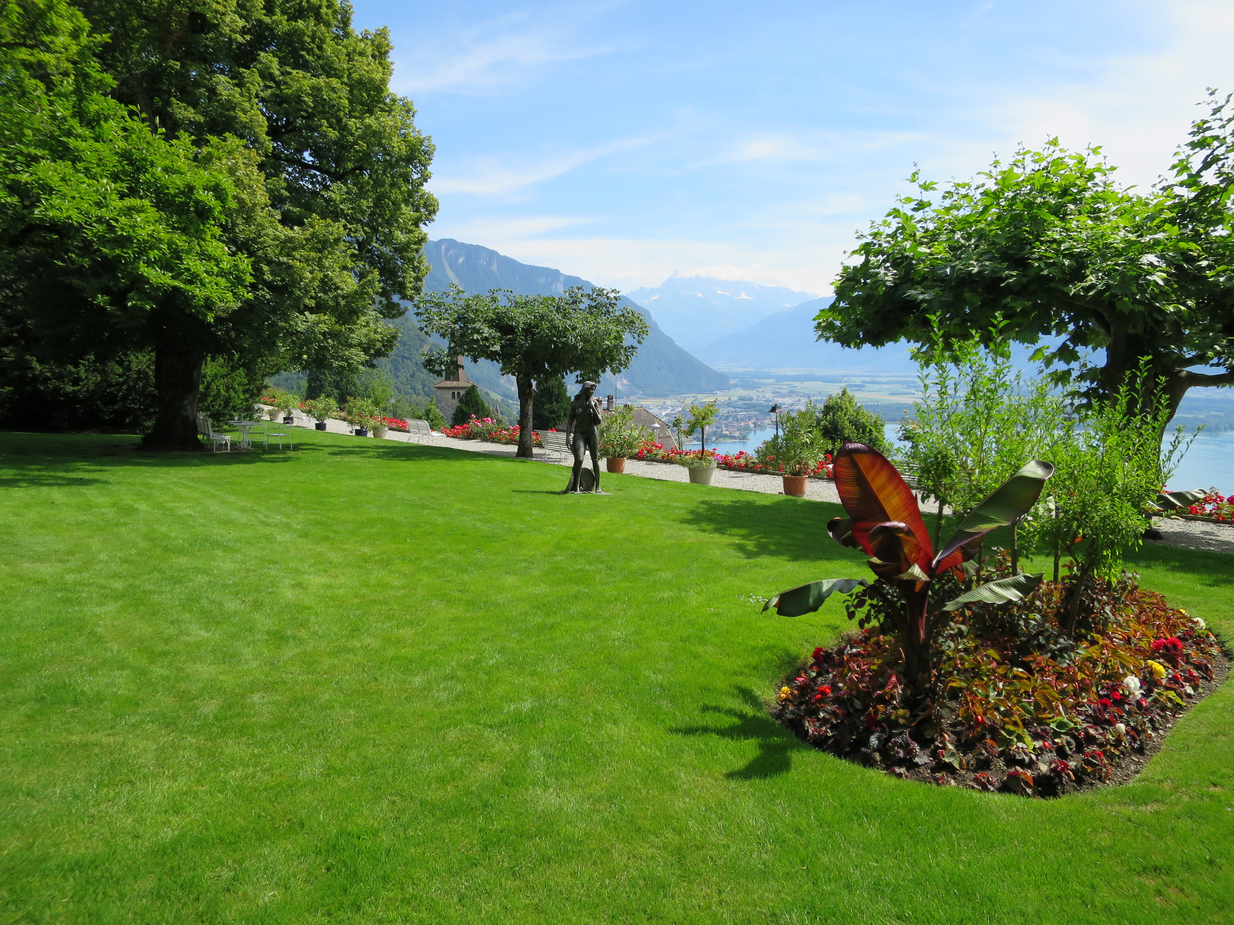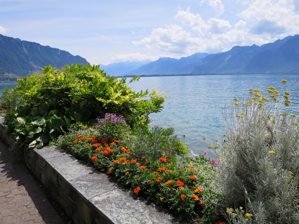 Nicht umsonst wird diese Gegend ‚Montreux Riviera‘ genannt. Das fast mediterrane Klima lässt Palmen und Olivenbäume wachsen und die Gipfel der Berge, die den See säumen, boten mit ihren teilweise noch schneebedeckten Gipfeln ein schönes Bild.