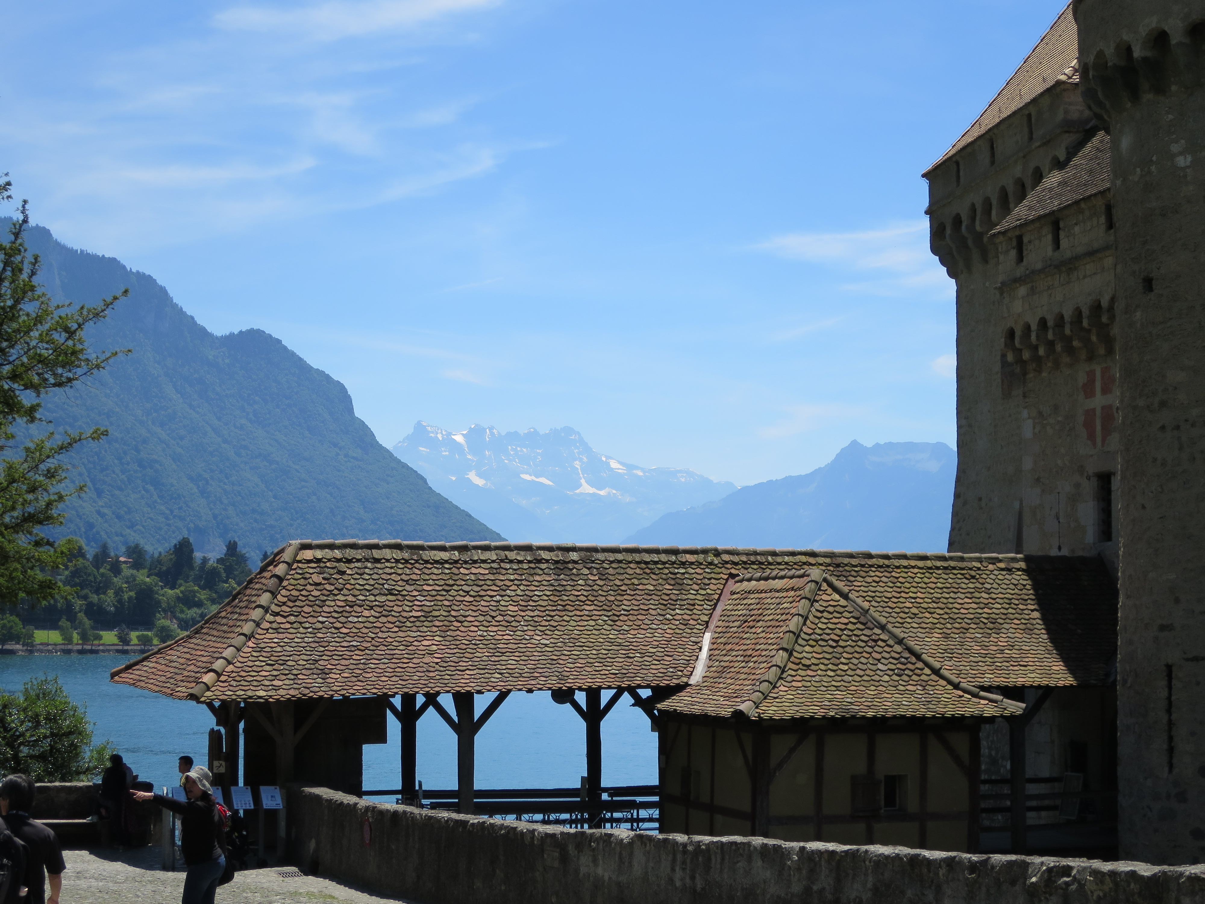 Der kommende Tag war mein Tag und ich startete bei sehr warmen Sommerwetter mein Besichtigungsprogramm, während mein Mann sich dem Aufbau der Musikanlage widmete. Ich hatte geplant, Schloss Chillon anzuschauen. Der Bus dorthin hielt fast vor der Tür des Eurohotel und liess auch nicht lange auf sich warten. Im Hotel stellte man mir noch einen Gutschein aus, mit dem ich an diesem Tag nach Herzenslust Bus fahren konnte. Was ich nicht vorhatte … die Busse hatten keine Klimaanlage.