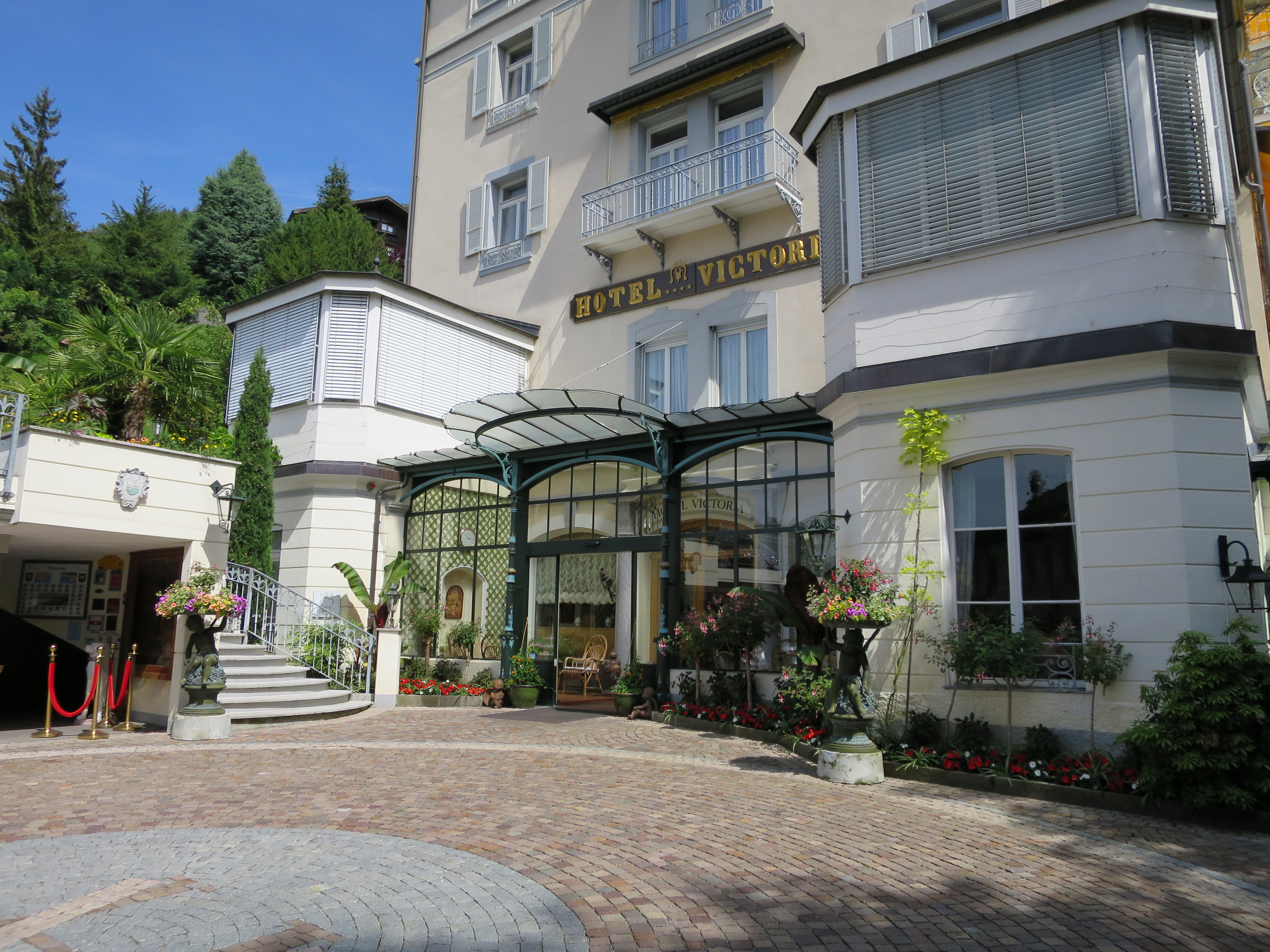 Mein Ziel in Glion war das wunderschöne Hotel Victoria. Der Blick von der Terrasse des Hotels musste traumhaft sein, stellte ich mir vor. Das Haus wurde 1869 erbaut, wechselte einmal den Namen und mehrmals den Besitzer. In Glion abgekommen, ging es bei grosser Hitze noch ein Stückchen steile Strasse zum Hotel hinauf. Jetzt hatte ich mir aber mindestens einen Kaffee verdient …