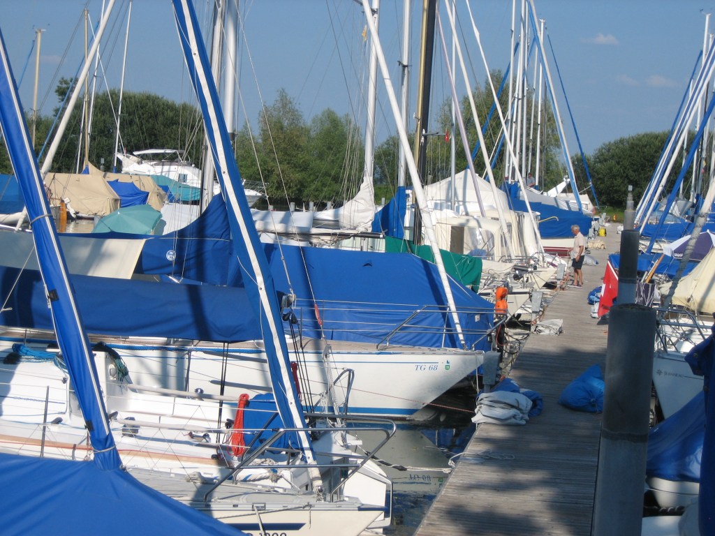 Jedenfalls legte neben uns ein sehr schönes Boot an mit einem älteren Ehepaar an Bord. Der weibliche Teil der Crew mit schickem roten Käppi mühte sich von Bord und bekam beim Festhalten des Schiffes immer längere Arme. In mehr als unfreundlichem Ton quäkte sie Anweisungen an ihren Mann über die ganze Länge des Schiffes. Mach doch mal endlich dies … mach doch mal endlich das. Uiih, da bekam man ja schon vom Zuhören einen dicken Hals und ich fragte mich, wann dieser Schlappi auf unserer Backbordseite endlich mal den Mund aufmachte. Es dauerte sehr lange, bis er seiner Frau endlich nahelegte, den Mund zu halten ‚…ich will jetzt nichts mehr hören‘. Ich war beruhigt, er konnte sprechen.