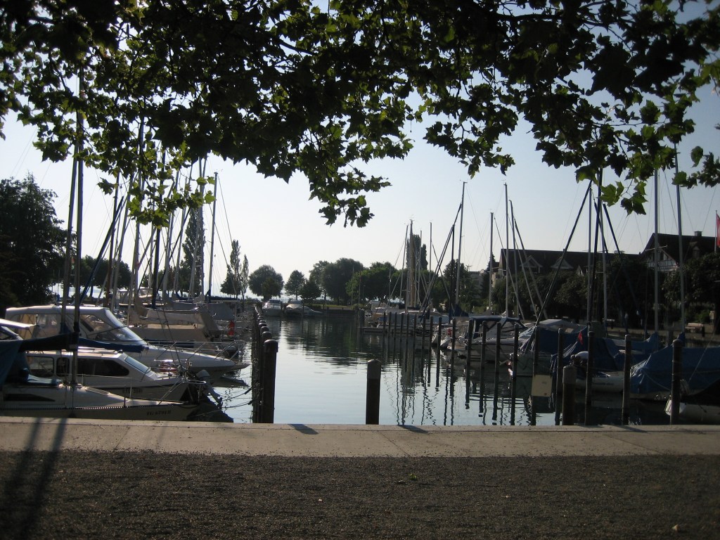 Am nächsten Morgen merkte ich, dass ich noch nicht so richtig in den Ferien angekommen war. Aus meinem Handy-Wecker dudelte sanfte Harfenmusik. Und das um 5 Uhr morgens. Mein Mann musste einen gesegneten Schlaf haben, er hörte weder den Wecker noch mein Fluchen. Glück für ihn :-). Übrigens kenne ich rund um den See jeden Bäcker in Hafennähe. Und ich geniesse es sehr, in der Früh einen kleinen Spaziergang zu machen und frische Brötchen zu holen, während mein Mann in der Zwischenzeit den Kaffee macht. Wunderbaren Kaffee, nebenbei bemerkt. Der Bäcker in Romanshorn hat sich leider zu seinem Nachteil verändert, die Brötchen waren einer Gummi-Ente ähnlich und ich hätte sie ebenso gut im Supermarkt nebenan kaufen können.