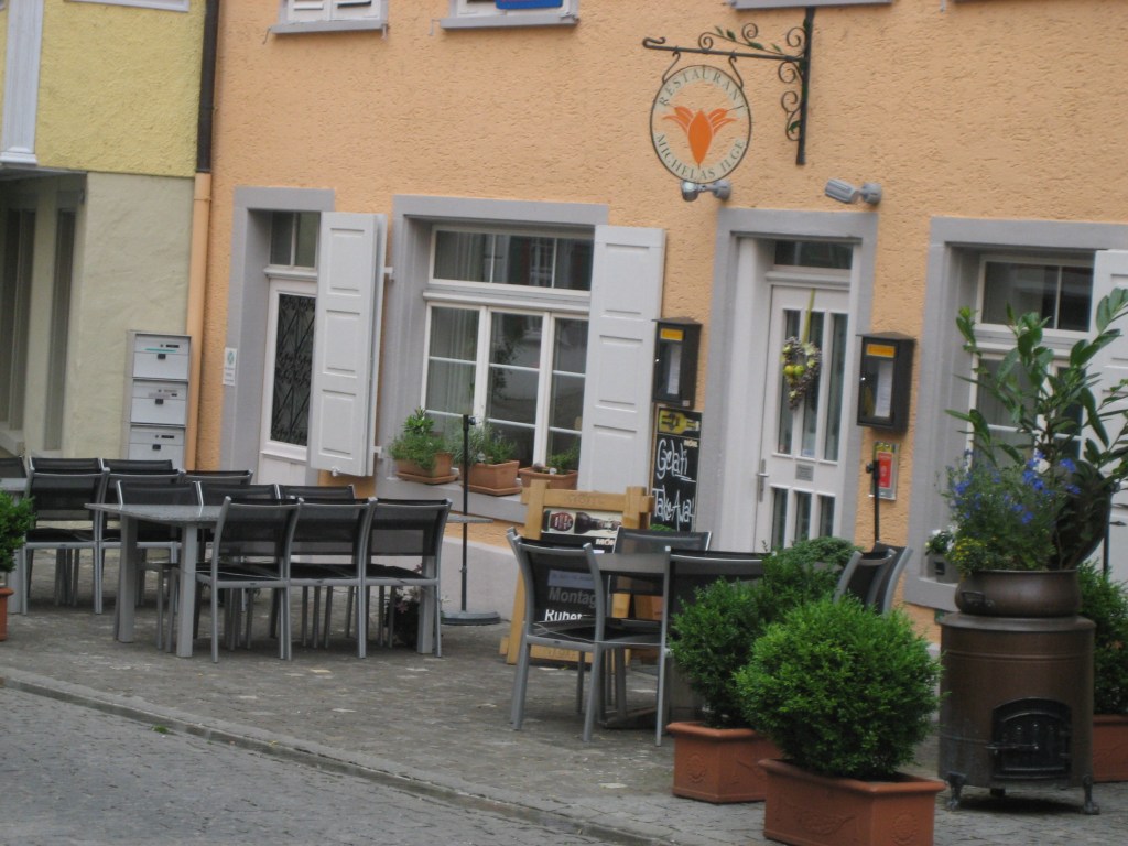 Ein kleines, feines, vom Aussehen her eher unscheinbares Restaurant in der Altstadt von Arbon mit bevorzugt mediterraner Küche, aber auch ein paar Klassikern. Hier kocht normalerweise Michela, die Wirtin, selbst. Aber jetzt war sie im Mutterschaftsurlaub und obwohl die bestellten Gerichte ausgezeichnet schmeckten, fehlte doch ihre Handschrift beim Anrichten der Teller. Und was auch nicht mehr so schön ist wie früher … man sitzt jetzt zu viert an einem Tisch und kommt nicht drum herum, die Gespräche der anderen mitzuhören.