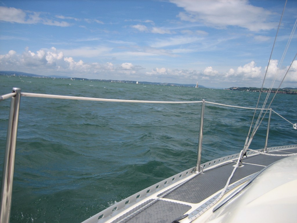 Am folgenden Tag hatten wir kräftigen Wind bis nach Meersburg. Bei der Gelegenheit stellte ich fest, dass mir ein bestimmter Wellengang gar nicht bekommt, das war neu für mich. Ich überlegte mir vorsorglich, wo ich das Abendessen vom Vortag deponieren sollte, aber Gott sei Dank kam es nicht dazu.