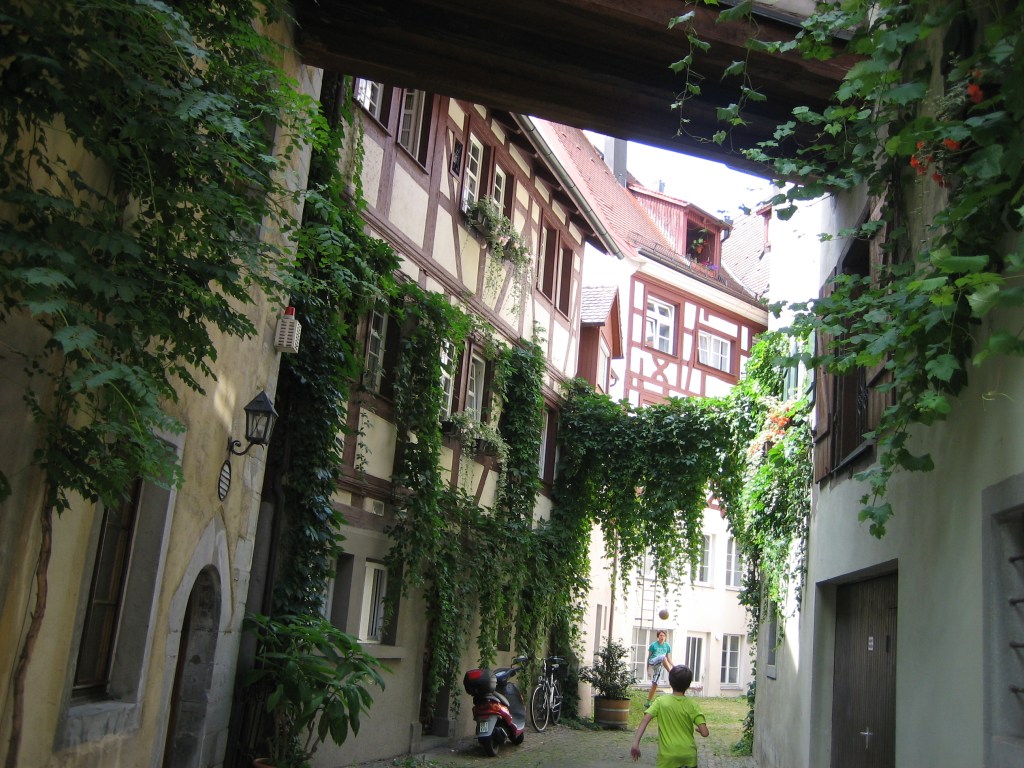 Ludwigshafen hat eine sehr nette Seepromenade. Im Hof vom ‚Alten Zollhaus‘ kann man sich im Schatten wunderbar von der Hitze erholen.