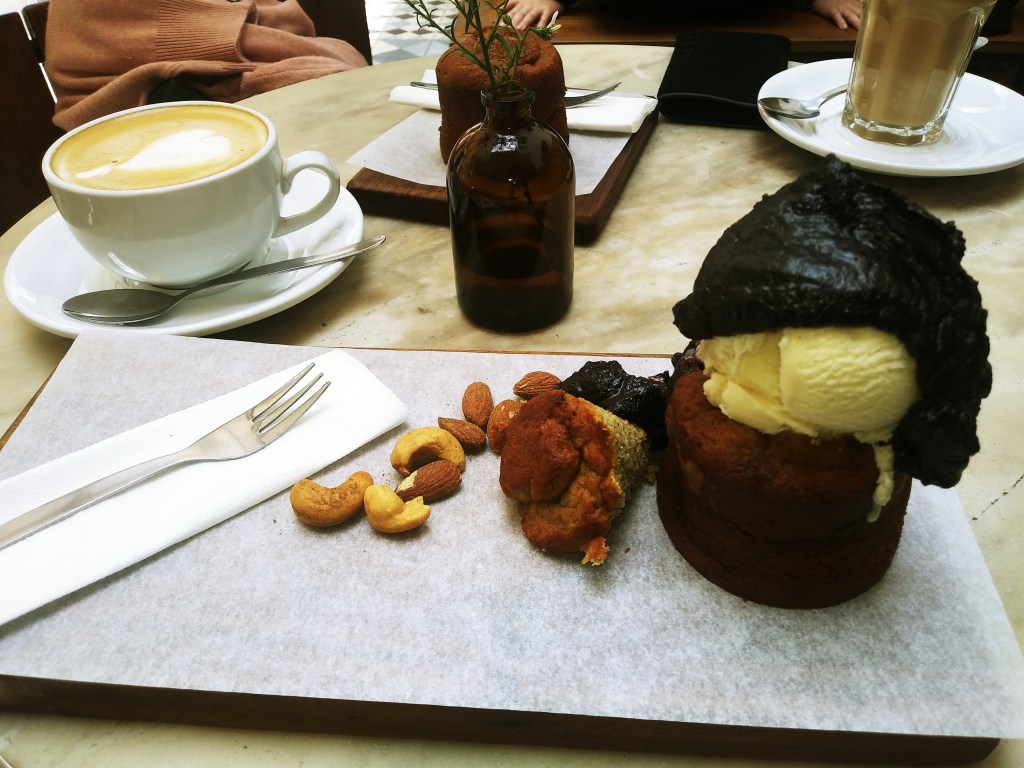 Nach einem ausgiebigen Spaziergang, die kopfsteingepflasterten Strassen rauf und runter, hatten wir Lust auf einen Kaffee und was Süsses und entdeckten … ein Schokoladencafè. Eigentlich heisst es ‚Honest Chocolate Cafe‘ und man bekommt alles, was der Süssigkeiten-Junkie (ich!) begehrt. Ich entschied mich für einen Latte Macchiato und einen Brownie. Superfluffig. Superlecker.