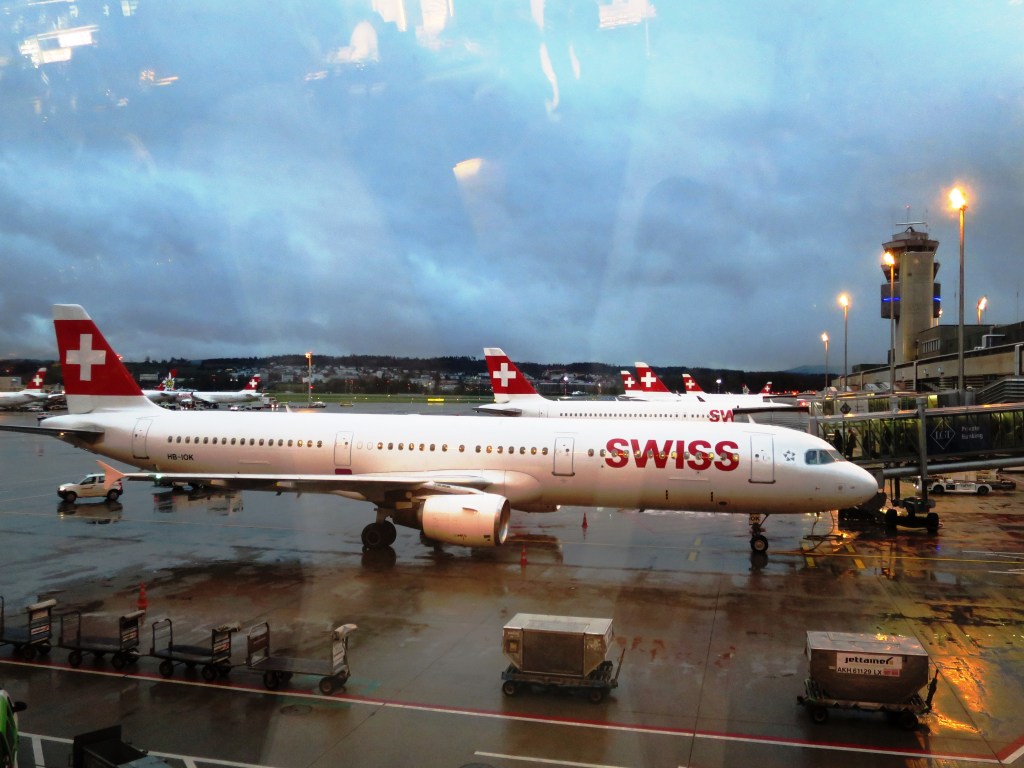 An einem stürmischen und regnerischen Freitagnachmittag Ende November starteten wir mit dem Zug Richtung Zürich Flughafen. Wir waren ziemlich früh dran, doch nur mit diesem Zug mussten wir nicht umsteigen und unser Gepäck von einem Bahnsteig auf den anderen schleppen. Am Flughafen angekommen, hatten wir Glück … wir konnten direkt im Check-in 3 einchecken. Dank bereits vorhandener Boarding-Pässe und Koffer-Etiketten war die ganze Übung in ein paar Minuten erledigt, ohne Warteschlange und langes Anstehen.