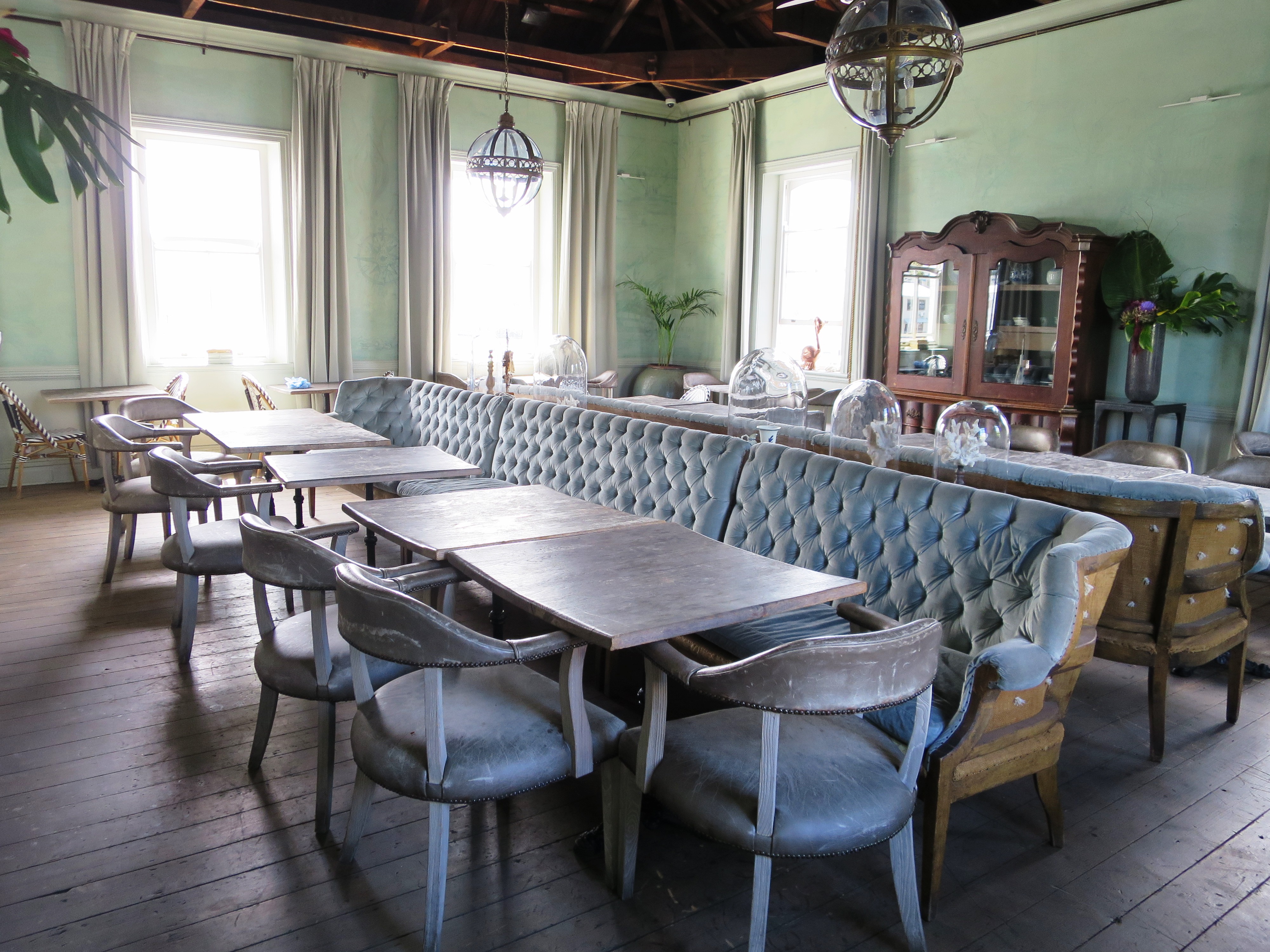Jedenfalls haben wir an unserem ersten Morgen erst einmal einen Spaziergang zum Hafen gemacht, der Waterfront. Hier finden sich zahlreiche Geschäfte, Restaurants, Cafes und Strassenmusiker. Zuerst machten wir einen kleinen Rundgang, bevor wir uns von einem ausserordentlich gut gelaunten Ober ein tolles Frühstück auf der Terrasse des Life Grand Cafe Waterfront servieren liessen. Und das zu einem Preis, der uns staunen liess. Den oberen Stock im Inneren des Grand kann man mieten für Events, die Einrichtung ist sehr charmant und gemütlich.
