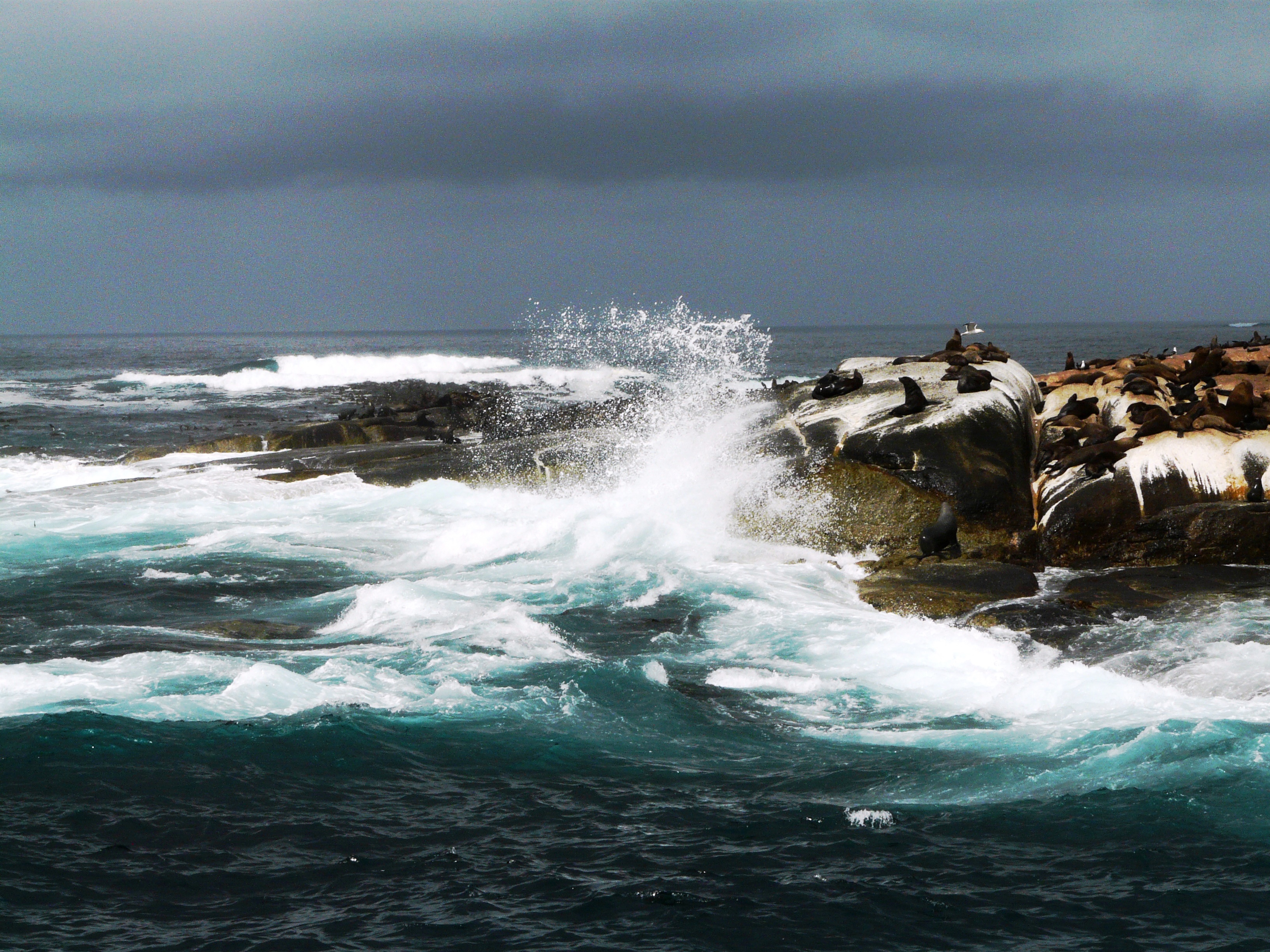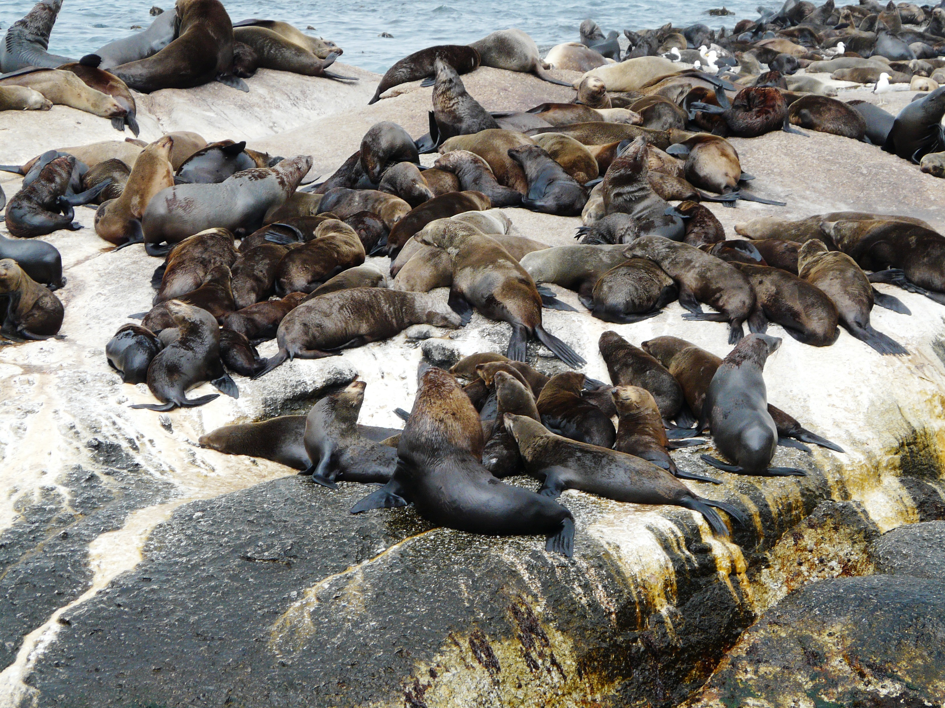 Unsere Fahrt ging an die Küste von Hout Bay. Im Bus wurden wir gefragt, wer von hier aus eine ca. 40-minütige Bootsfahrt zur Robben-Insel ‚Seal Island‘ machen möchte. Der Preis für die Überfahrt war nicht im Tourpreis enthalten, betrug aber nur ein paar Euro. Der Trip ist auf jeden Fall empfehlenswert. Das Boot fährt sehr nah an die Robben-Insel heran (… ziemlicher Wellengang) und man hat genügend Zeit, Fotos zu machen.