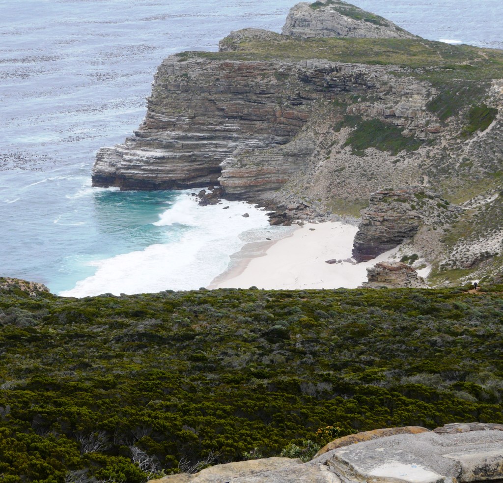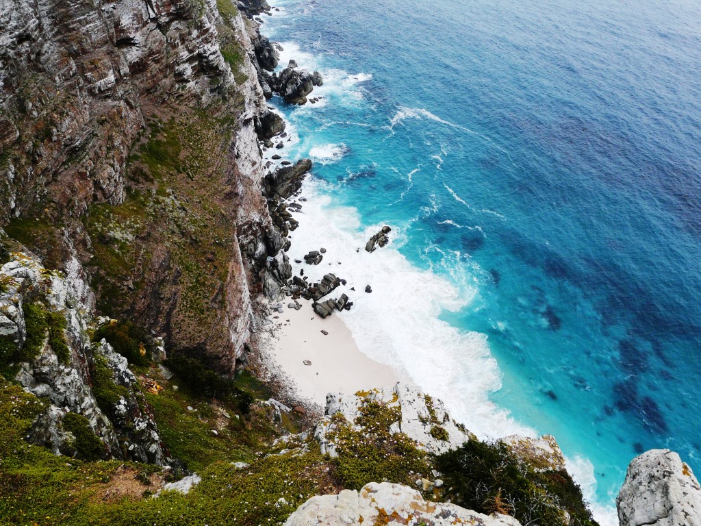 In Cape Point sollte man unbedingt auf eine der höchsten Klippen der Welt. Man kann mit der Standseilbahn fahren oder zu Fuss gehen. Der Weg über Natursteintreppen hinauf zum alten Leuchtturm auf dem Cape Point Peak ist steil und dauert ca. 20 Minuten. Dafür ist die Aussicht über die False Bay unbezahlbar. Von hier oben kann man das Cape of Good Hope sehen, was unser nächstes Ziel sein sollte.