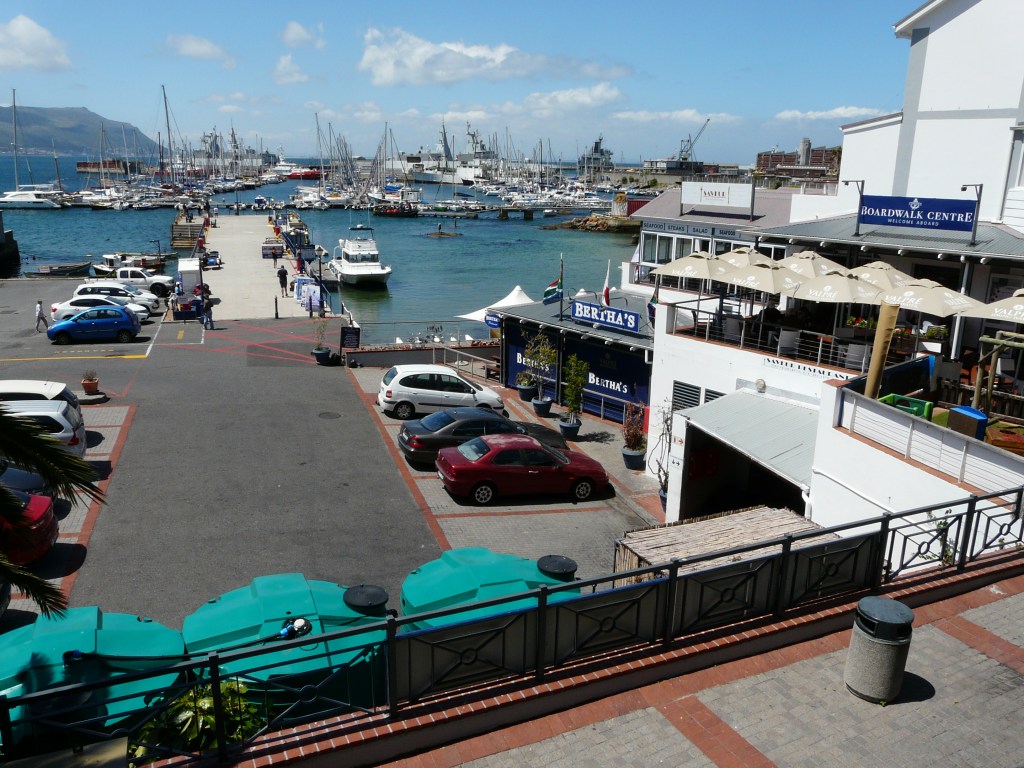 Zum Mittagessen fuhren wir in das verpennte kleine Simon’s Town, einem malerischen Stadtteil von Kapstadt. An der Quay Side, im Harbour View Restaurant, durften wir auf der Terrasse mit Blick auf den Hafen einen vorzüglichen Fisch geniessen. Der Wein dazu war ebenfalls hervorragend. Oha … und fuhr ganz schön ein ![]()