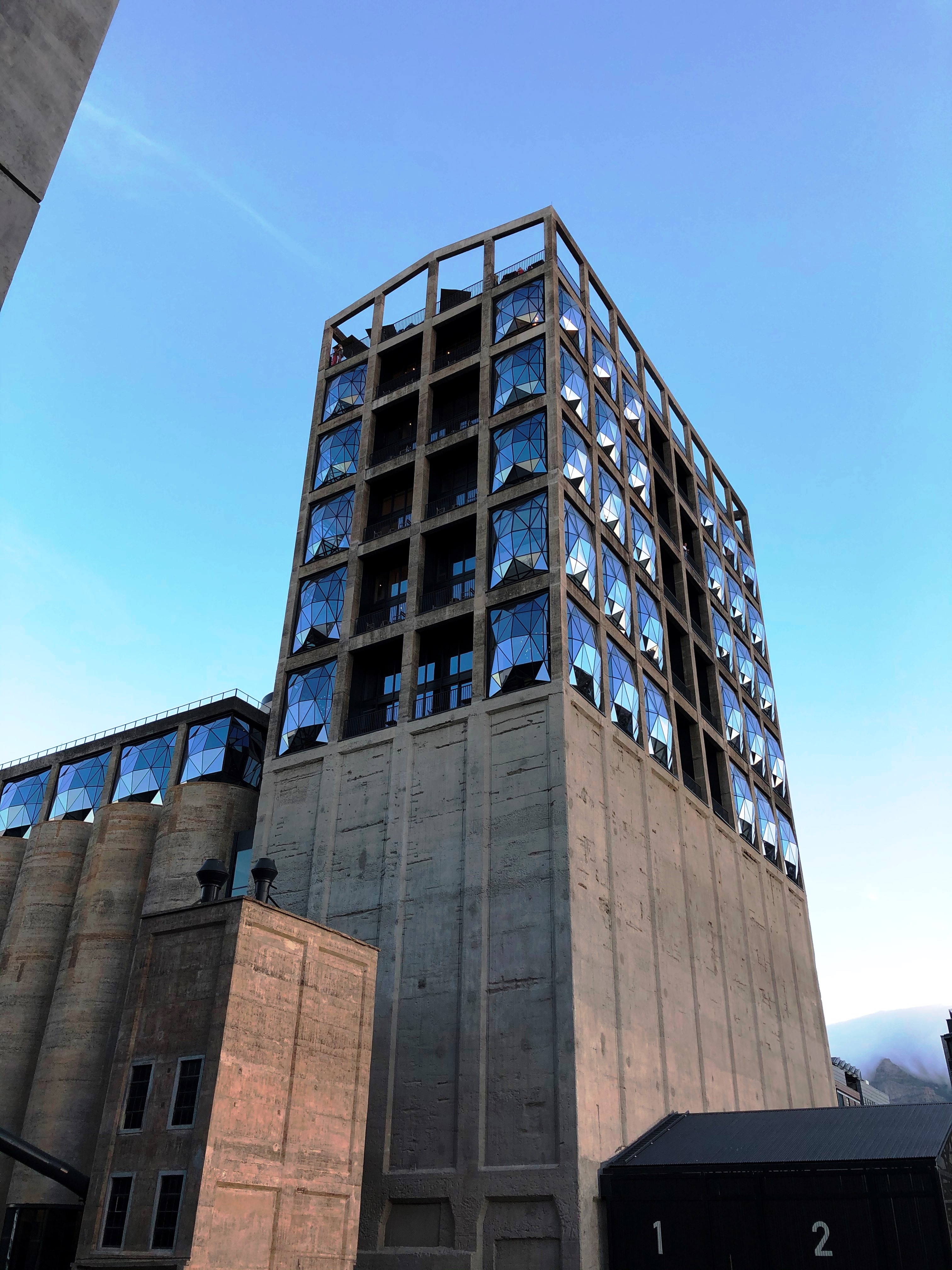 Auf unserem Weg ins Restaurant entdeckten wir das Hotel The Silo. Dieses aussergewöhnliche 5-Sterne Luxushotel beeindruckte allein schon von aussen. Es wurde auf ein altes Getreidesilo gebaut und belegt die oberen 6 Stockwerke des Gebäudes. Darunter liegt das Zeitz Museum of Contemporary Art Africa.