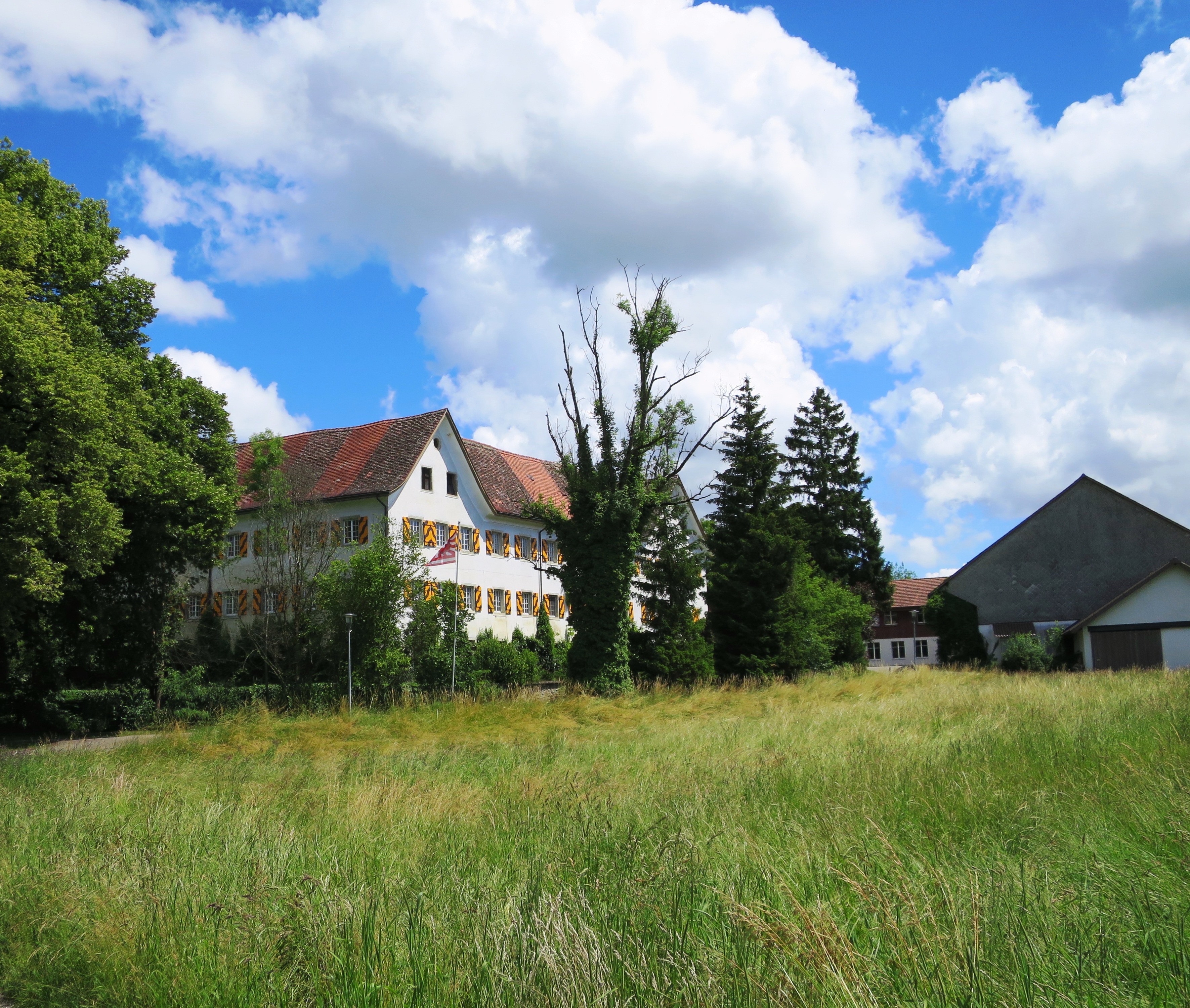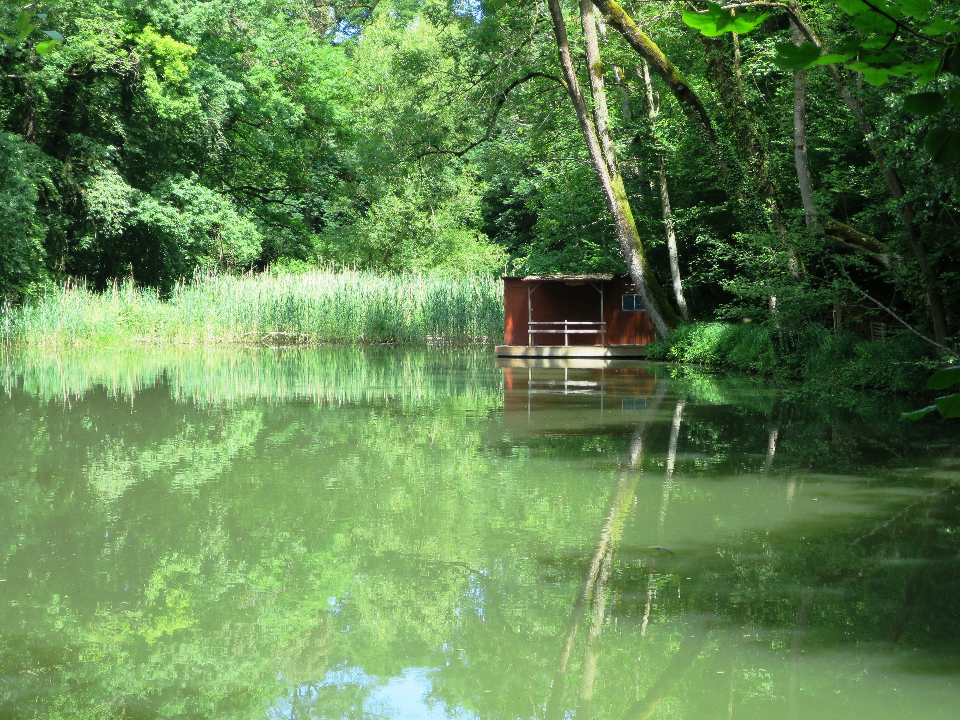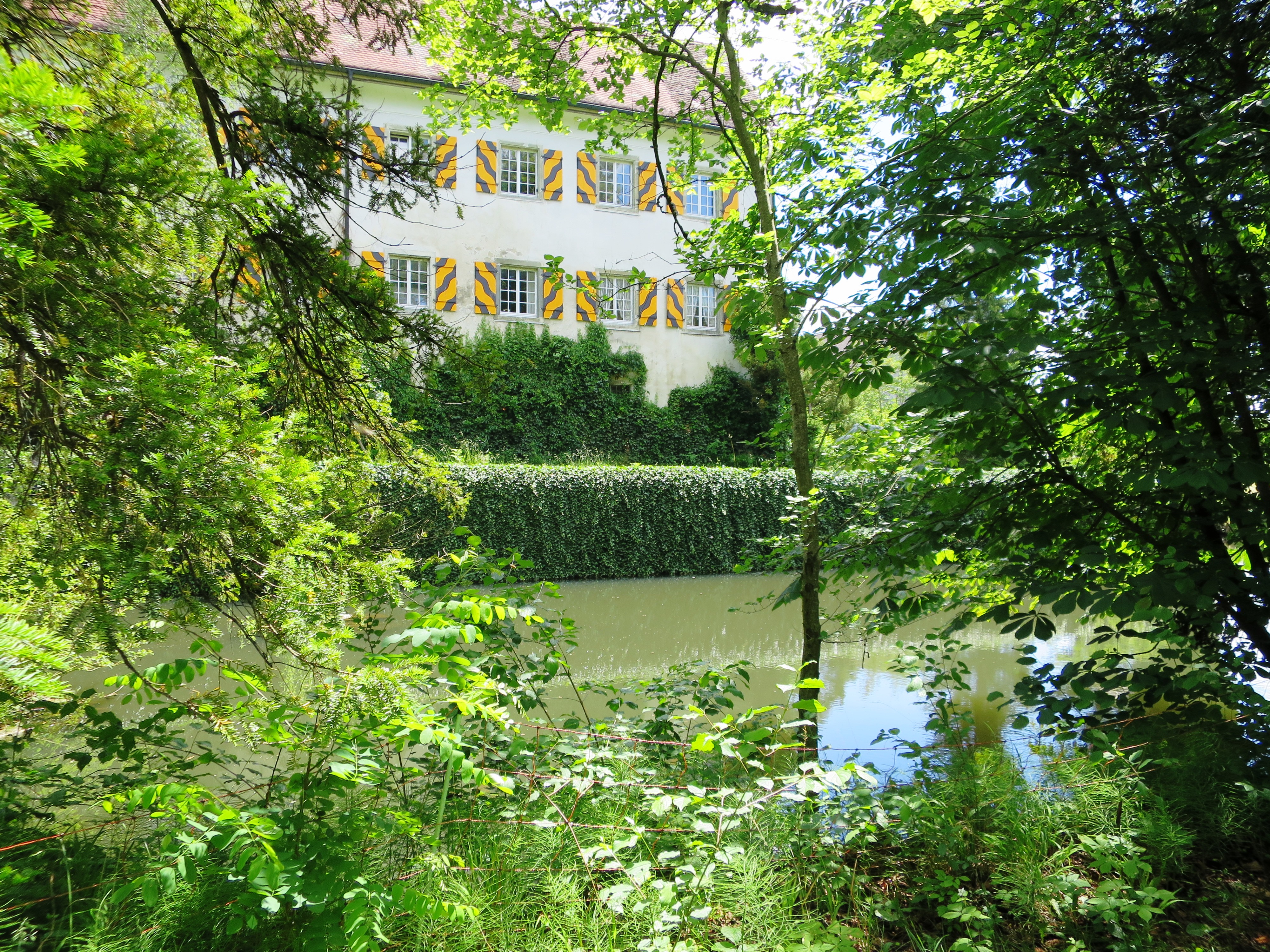 Dann aber auf dem richtigen Pfad haben wir das wunderschöne Schloss passiert. Heute ist es in Privatbesitz. Der dazu gehörende Weiher vermittelt eine idyllische Ruhe.